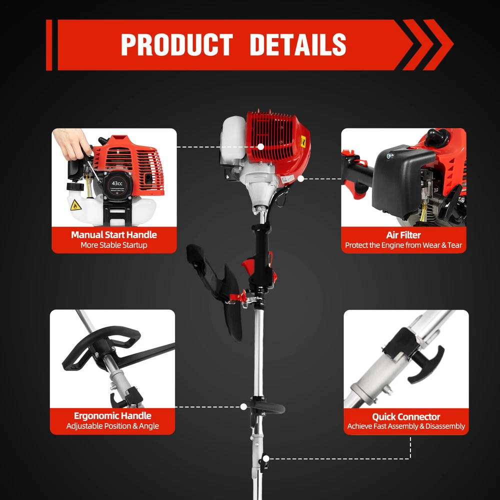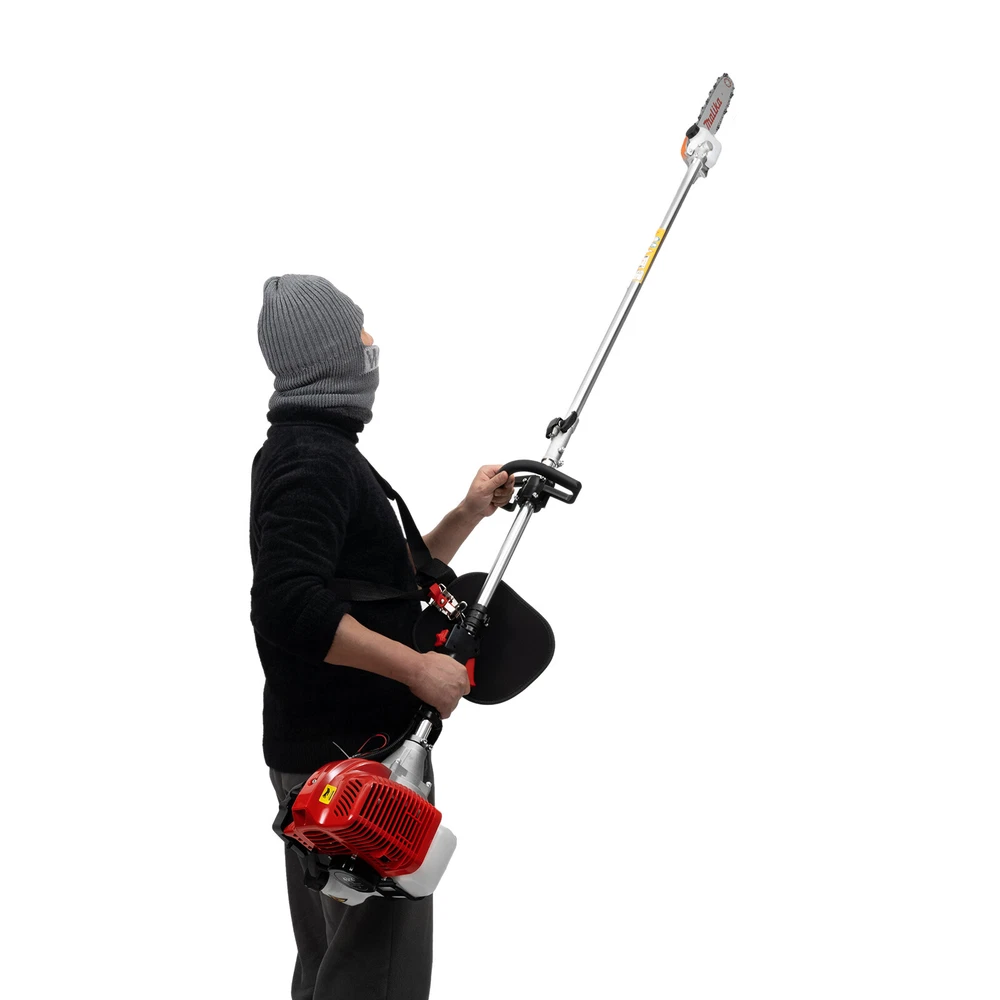 This gas-powered pole saw is a beast for trimming trees and pruning branches! The lightweight aluminum alloy and manganese steel make it durable yet easy to handle, while the 42.7cc engine delivers serious power. The adjustable length is super handy for reaching high branches, and the 12-inch bar cuts through thick limbs effortlessly. Starts up quick with the manual pull, and the fuel mix is simple. Perfect for tackling overgrown yards—definitely worth it for anyone needing a reliable, heavy-duty pruning tool!