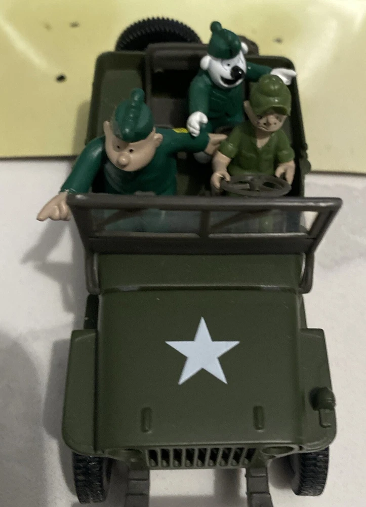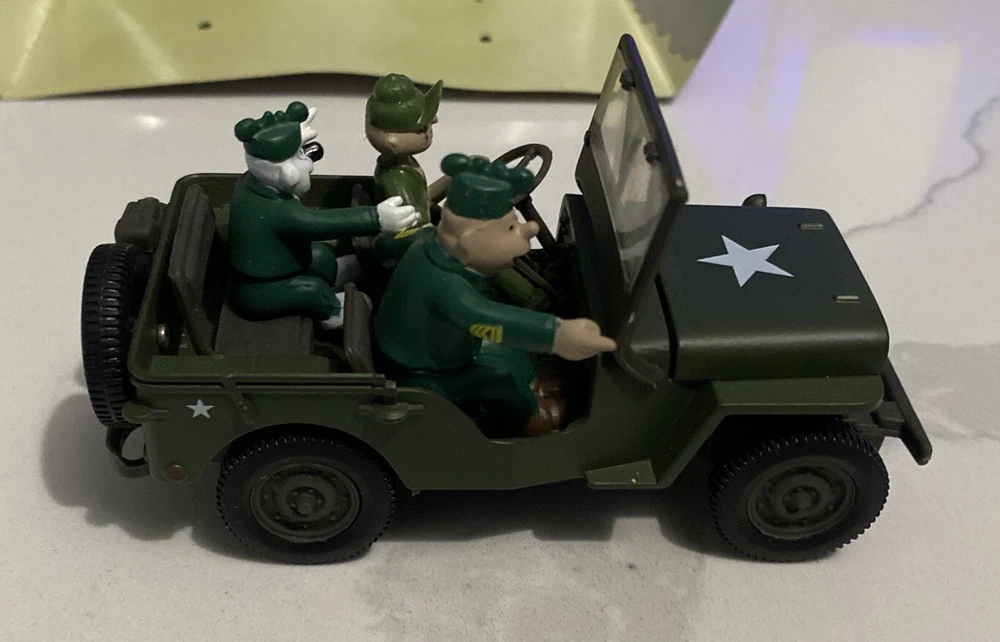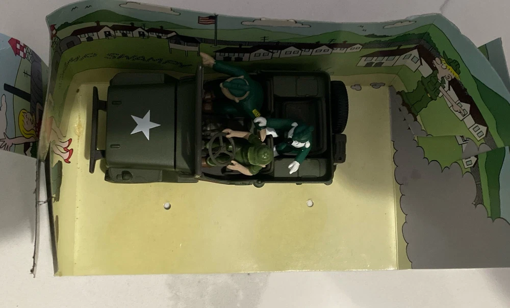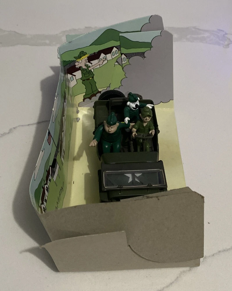 Have a World War II Willys jeep with beetle Bailey collectible toy in good condition is used comes with cardboard cut out. Don’t have the original box for It please check all pics. No returns or refunds.
