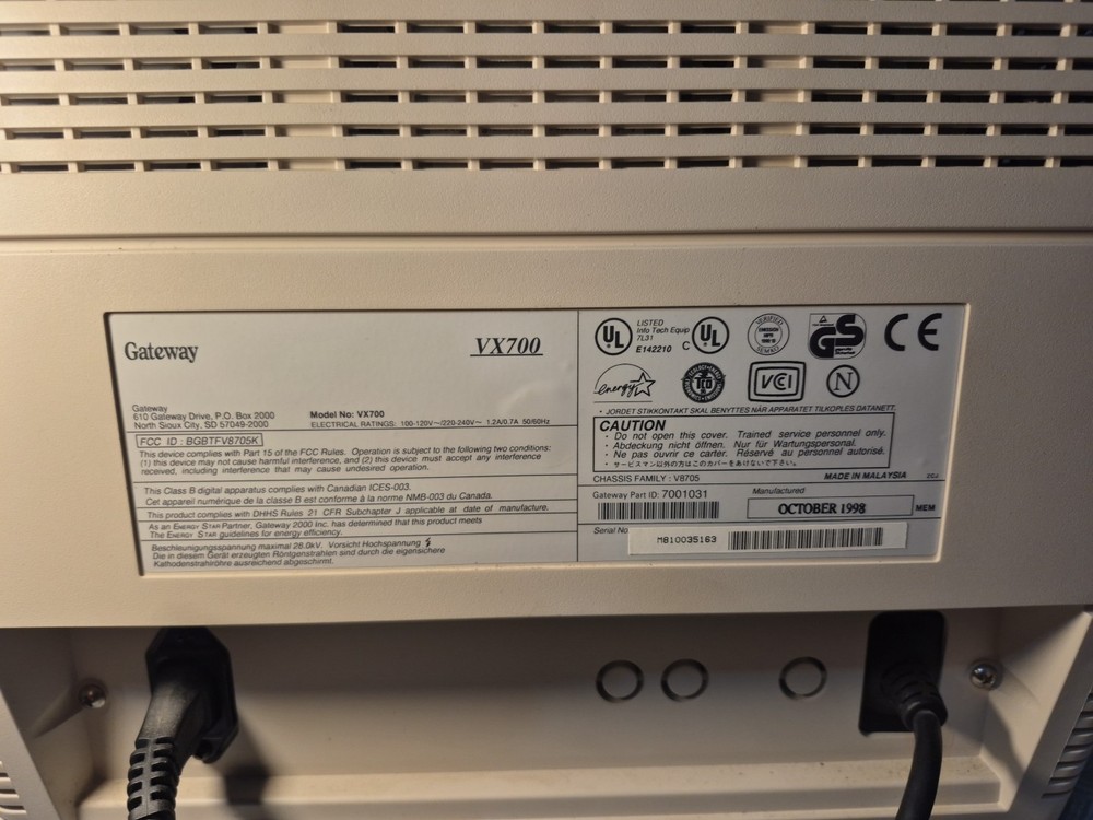 Gateway VX700 16" Color CRT Computer Monitor Retro Gaming 1998 Tested & Working