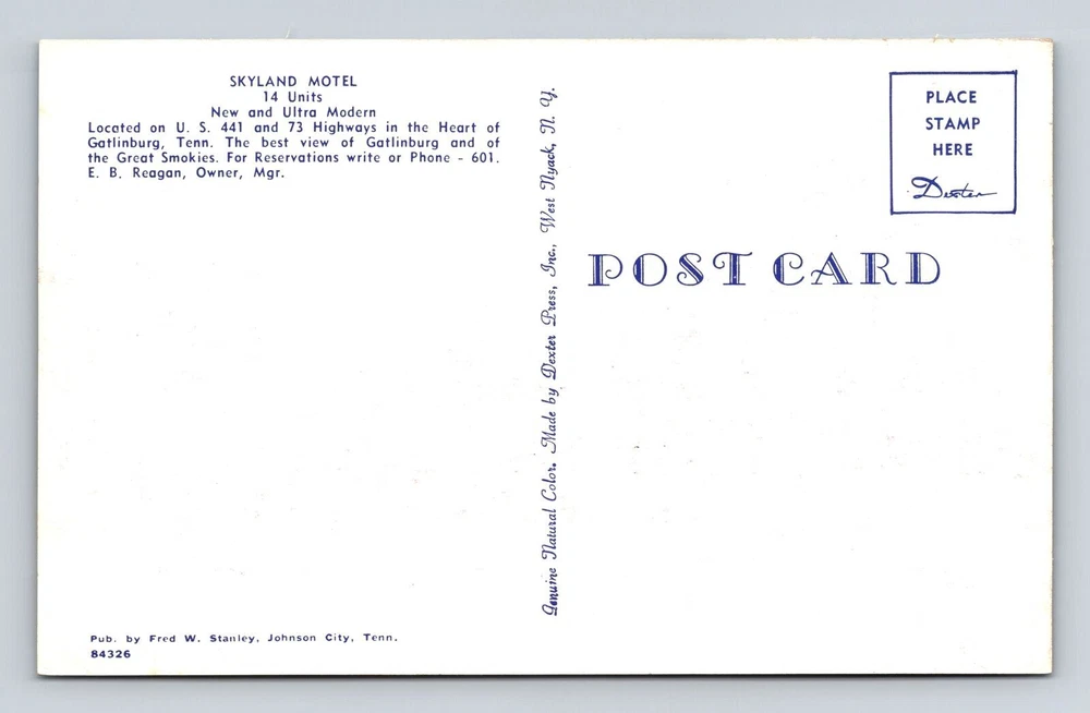 Gatlinburg TN-Tennessee, Skyland Motel Advertising, Vintage Souvenir Postcard
