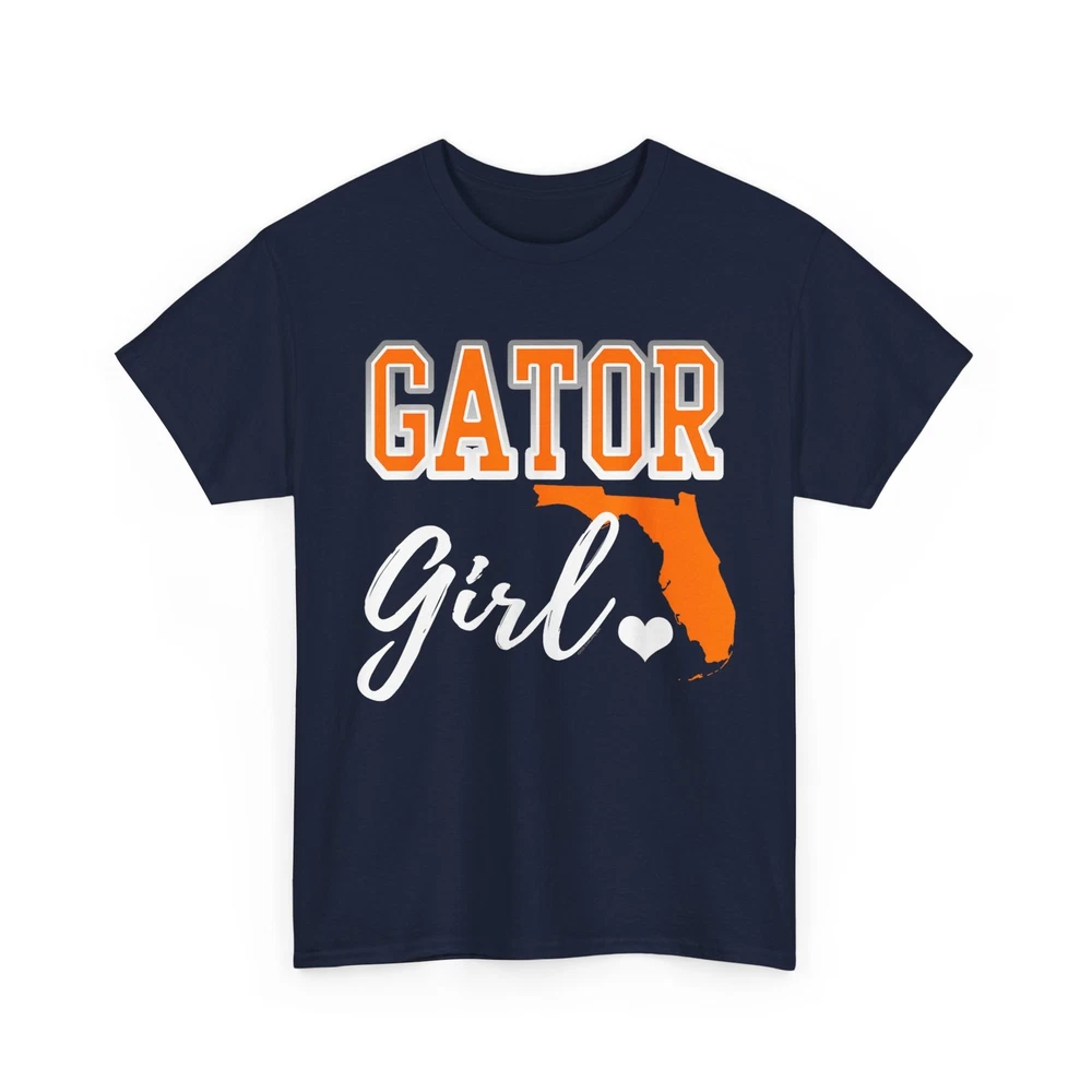 Gator Girl shirt. Florida heart map shirt. Show pride for your Florida with cute script writing, heart and map shape. Gator girl design for girls, women.