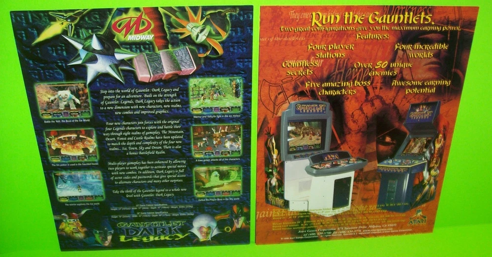 Gauntlet Legends & Dark Legacy Arcade Game Flyers Original NOS Lot Of 2