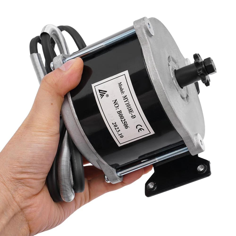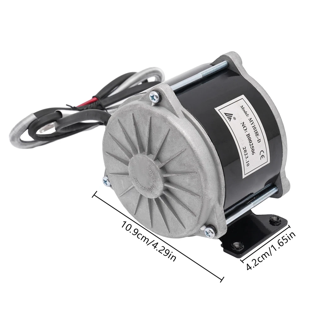 Gear Reduction Electric Motor,?Electric Bicycle Brushed Motor Reductor,?Brushed Description Description Our 24V gear reduction electric motor can help you achieve high-efficiency deceleration for your e-bike. High-quality materials make it sturdy and durable . It has advantages such as excellent performance, flexible rotation, and large load capacity . It adopts gear transmission to reduce the speed of the motor to realize the smooth starting and low-speed riding of the e-bike, which can bring you a more convenient and comfortable riding experience. Key Features High-quality Material: The product is made of iron, copper, and aluminum, with high hardness, high-temperature resistance, and corrosion resistance , ensuring a long service life. Excellent Performance : The 500W brushed DC motor has a 1700rpm speed and high torque, achieving efficient deceleration. Flexible Rotation: By connecting the power cord of the motor in the forward/reverse direction, this product can be adjusted to rotate clockwise or counterclockwise, increasing its flexibility and extending its service life. Large Load Capacity: Compared to high-speed motors, this product can support a heavy load of up to about 440.9 lbs, providing a more powerful operation. Protective Package: To prevent the product from being damaged during transportation, we packed it with foam to protect your products to the maximum extent possible. Easy to Move: The compact size( 4.3*1.65 inches ) and lightweight( gross weight: 6.2 lbs ) make it easy to move everywhere. Assembly in a Breeze: The simple structure and predrilled holes allow you to install it with less effort and time . Buy with Confidence: We are honored that you have chosen our product. We have sufficient confidence in the quality of the product so that you can buy it confidently. But if you have any questions, you can contact our customer service, he will patiently answer and solve your problems. Details Smooth Edges: The smooth and burr-free edges enhance the beauty of the product and better care for your skin when installing and cleaning it. Long Power Cable: The long power cable(3.3 ft) adds convenience and extraordinary mobility when using and installing this motor. Four-hole Base: The motor features an enlarged and thickened base, which increases the contact area and ensures stability while the motor is working. Application It's suitable for motorized bicycles, mopeds, bikes, pocket bikes, electric dirt bikes, scooters, e-bikes, electric vehicles, electric vehicle modifications, and several small mechanical equipment. Specifications Model: MY1018E-D Material: Iron, Aluminum, Copper Color: Black, Silver Style: Modern Shape: Round Assembly Required: No Rated Voltage: 24V Rated Speed: 1700RPM No-load Current: ≤ 2A Rated Power: 500W Rated Efficiency: ≥ 78% Protection Level: IP44 Rated Torque: 1.98NM Insulation Level: F Motor Load Capacity: About 200kg/440.9lbs Gross Weight: 2.8kg/6.2lbs Power Cable Length: 1m/3.3ft Product Size: 10.9*4.2cm/4.3*1.65in Package Size: 18.5*18.5*14.5cm/7.3*7.3*5.7in Package Included 1* Gear Reduction Electric Motor Notes Please note that if you need to adjust the speed, you need to use it with a controller (not included). Please note that this product does not contain a cooling fan, please do not use it in a small confined space. Please allow the slight color difference caused by the shooting light and 1-3cm error due to manual measurement, and make sure you do not mind before you order. Payment Delivery details Terms of sales About us Contact us Payment We accept ebay payment 。 Fees such as import duties, taxes are not included in the item price or shipping costs. These charges are the buyer's responsibility. Delivery details Shipping: 2-9 working days to: USA Terms of sales We maintain high standards of excellence and strive for hundred percent customer satisfaction. Feedback is very important to us. We hope that you contact us immediately before you give neutral or negative feedback, so that we can address your concerns. It is impossible to address issues if we do not know about them! About us Your satis faction is our ultimate goal. We work hard to earn your trust and future business. Our certified technicians have tested each item before shipping. The unit comes with 1 year limited warranty on all manufacturing defects. a) If you receive a defective item, you may return it or ask for a discount. Please contact us within 14 days after you receive the package. b) What you returned must be intact and in its original packaging as re? u. Customer is responsible for shipping costs of the returned item. c) We will cover the cost of shipping back t with the shipping rate indicated in the registration page. We will send you a new unit or refund the full payment you paid. Thank you. Contact us Business Hour Business Hour: Monday To Friday: 8:30 AM to 5:00 PM (Beijing China time) Due to time zones, our reply to your questions may not be immediately. But within above working time, we will reply your email within 24 hours. If it's non-workdays, please kindly be patient and wait till Monday. Please contact us with ebay message. Please feel free to contact us if you have any questions. Monday To Friday: 8:30 AM to 5:00 PM (Beijing China time) Due to time zones, our reply to your questions may not be immediately. But within above working time, we will reply your email within 24 hours. If it's non-workdays, please kindly be patient and wait till Monday. Please contact us with ebay message. Please feel free to contact us if you have any questions. Feature Compact Design,Unique Appearance,high reliability 1.Feature* Unique Appearance,Great Durability 2.Feature* Compact Design,Convenient Use Brand Unbranded MPN N/A Model MY1018E-D Material Iron, Aluminum, Copper Color Black, Silver Style Modern Shape Round Assembly Required No Rated Voltage 24V Rated Speed 1700RPM No-load Current ≤ 2A Rated Power 500W Rated Efficiency ≥ 78% Protection Level IP44 Rated Torq