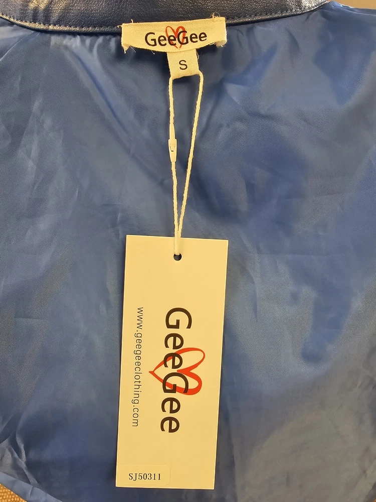 Elevate your wardrobe with the Gee Gee Blue Blazer, a statement piece for any casual occasion. Fashioned in a timeless blue hue, this blazer features a polyurethane and polyester outer shell, ensuring both durability and a comfortable fit. Its short jacket/coat length paired with a shawl collar lends a modern silhouette that seamlessly transitions from fall to spring. Attention to detail is evident with the blazer's rhinestone accents and solid pattern, adding a touch of sparkle to your ensemble. Designed with practicality in mind, it includes collared styling, lined interior for added comfort, and convenient pockets. This long-sleeve basic jacket, available in size small, is a versatile addition to your collection. Our items have been stored in a dust and smoke free environment. The photos are of the actual item and not stock pictures. There may be color, shade and hue variances due to different monitors and device settings. I do my best to take informative photos and to state colors accurately, but different shades of the same color family are subjective at best. Please contact us prior to leaving feedback, regarding questions or concerns, so we can work together to reach an equitable solution. Thanks for looking and know that you can bid with confidence regarding our merchandise and our customer service.
