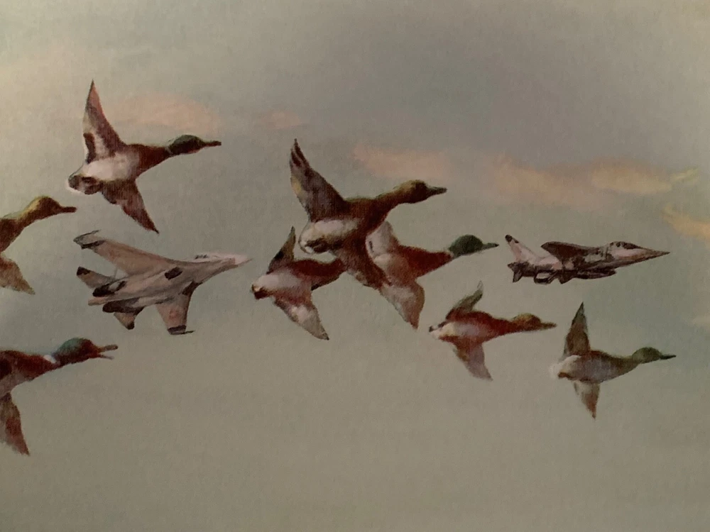 Artist: Gee Vaucher Title: Flying High Size: 26.57 x 22.6 Inches Paper: 330gsm Somerset Velvet extra heavy weight Technique: Screen Print Edition: of 200 Year: 2017 Notes: Released by Pictures on Walls