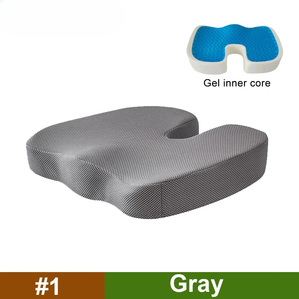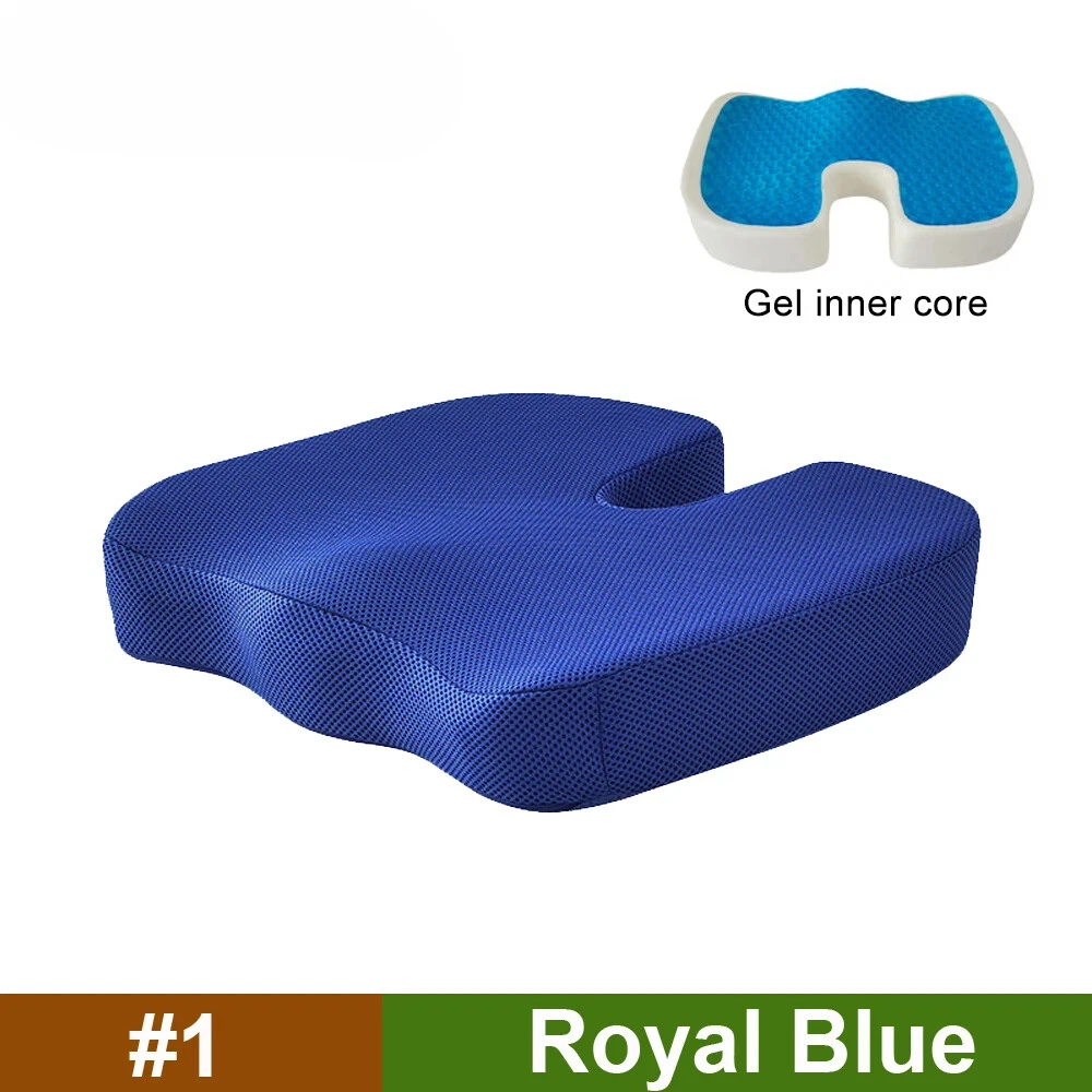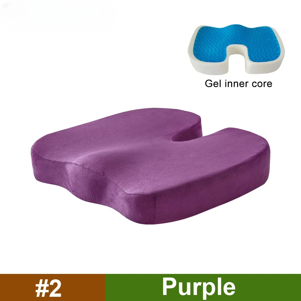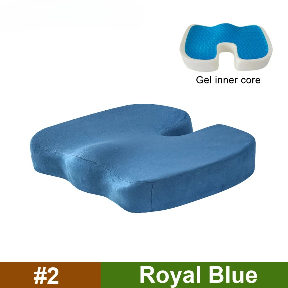 Helps Relieve Back Pain & Sciatica: Reduce Pressure on the tailbone Pain from sitting long hours Coccyx / Tailbone Relief Healthy posture Comfortable Sitting Provides Lower Back Pain & Sciatica Relief, Great for Office Use, Driving & Traveling - Supports recovery from lower back problems, herniated discs, tailbone injuries, sciatica and other spinal issues. Great for office, home, travel, car seat or wheelchair use. Machine-washable zippered velour cover for easy cleaning. Ultimate Comfort with Cooling Gel Made of high-quality pure memory foam and thick liquid gel for superior comfort. Memory foam uses your body heat to mold and contour to fit your precise shape. A memory foam chair cushion considers the amount of weight applied and provides support where you need it most. Non-slip bottom and machine washable bedspread for easy cleaning. Most Comfortable Gel Memory Foam Cushion On The Market The all-in-one features are unrivaled: Non-slip rubber bottom, machine-washable zippered velour cover for easy cleaning. The Coccyx Cushion is the best gel memory foam seat cushion on the market made of premium quality durable memory foam with cool off gel layer on top for superior comfort. How it Works Place the Seat Cushion on your favorite chair with the u-shaped cut out towards the back of the chair. Or take it with you wherever you go. Now sit back & relax! Specifications: Product Dimensions: 45*35*7cm Type 1: Breathable mesh cover Type 2: velour cover Package include : 1Pcs* Gel Enhanced Seat Cushion