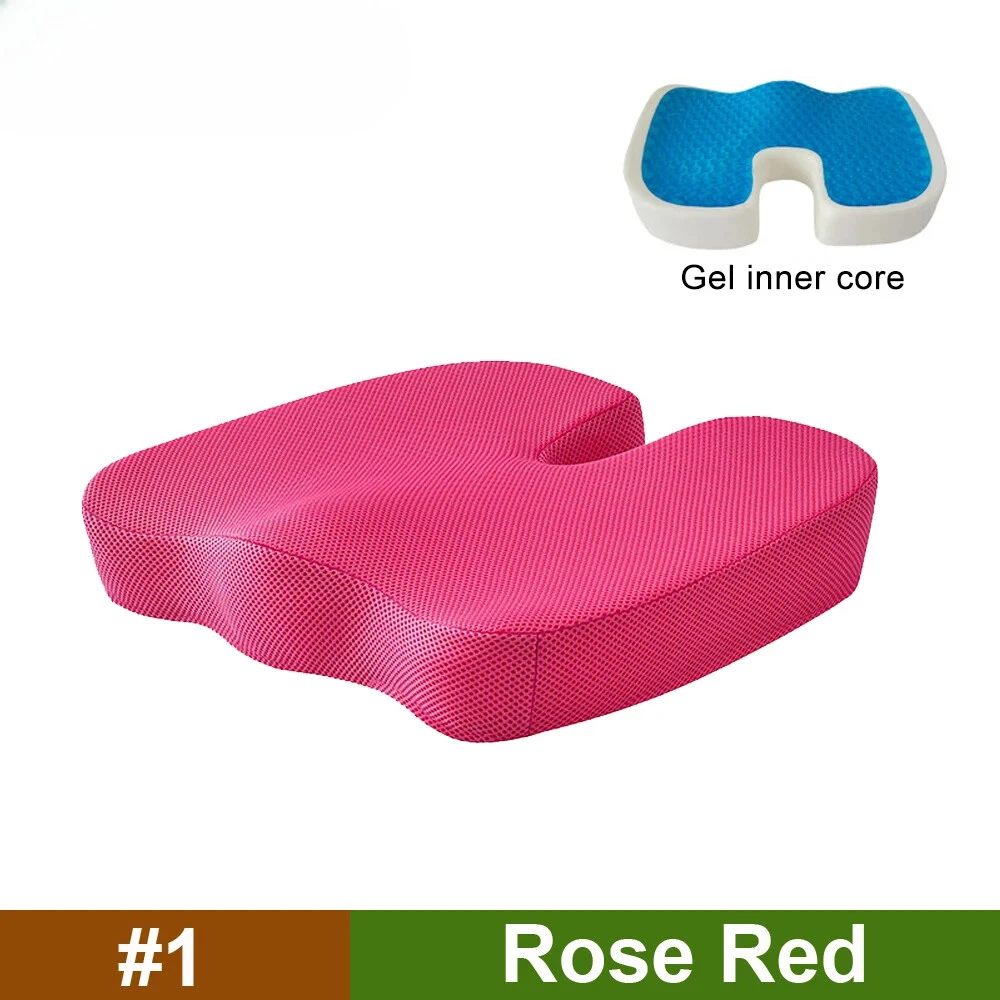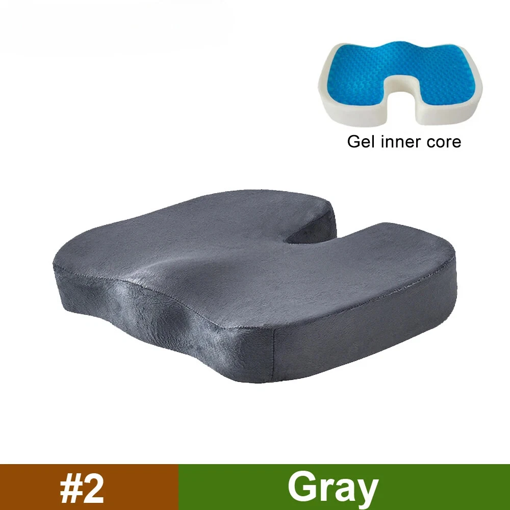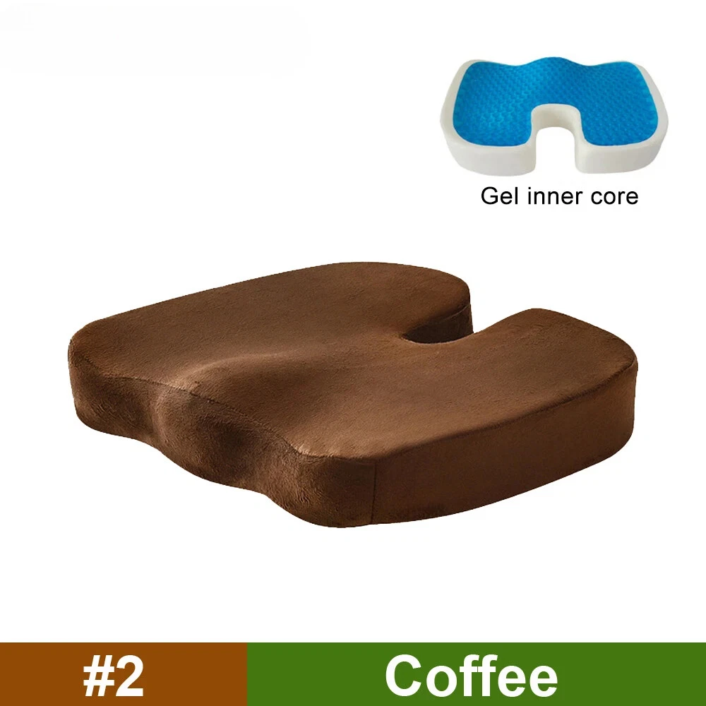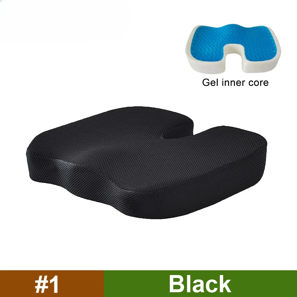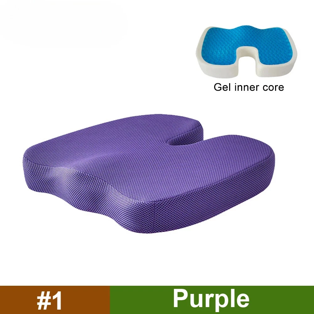 Helps Relieve Back Pain & Sciatica: Reduce Pressure on the tailbone Pain from sitting long hours Coccyx / Tailbone Relief Healthy posture Comfortable Sitting Provides Lower Back Pain & Sciatica Relief, Great for Office Use, Driving & Traveling - Supports recovery from lower back problems, herniated discs, tailbone injuries, sciatica and other spinal issues. Great for office, home, travel, car seat or wheelchair use. Machine-washable zippered velour cover for easy cleaning. Ultimate Comfort with Cooling Gel Made of high-quality pure memory foam and thick liquid gel for superior comfort. Memory foam uses your body heat to mold and contour to fit your precise shape. A memory foam chair cushion considers the amount of weight applied and provides support where you need it most. Non-slip bottom and machine washable bedspread for easy cleaning. Most Comfortable Gel Memory Foam Cushion On The Market The all-in-one features are unrivaled: Non-slip rubber bottom, machine-washable zippered velour cover for easy cleaning. The Coccyx Cushion is the best gel memory foam seat cushion on the market made of premium quality durable memory foam with cool off gel layer on top for superior comfort. How it Works Place the Seat Cushion on your favorite chair with the u-shaped cut out towards the back of the chair. Or take it with you wherever you go. Now sit back & relax! Specifications: Product Dimensions: 45*35*7cm Type 1: Breathable mesh cover Type 2: velour cover Package include : 1Pcs* Gel Enhanced Seat Cushion
