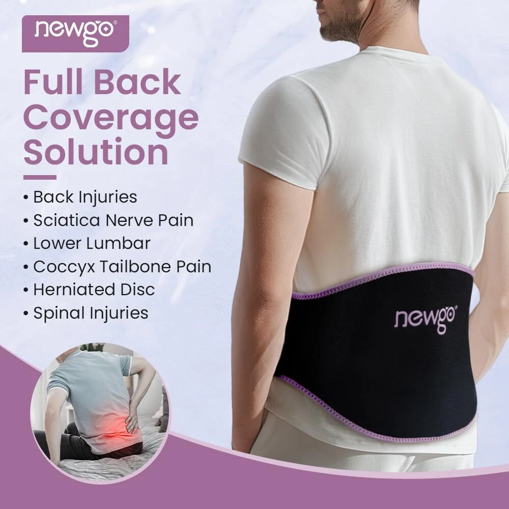 Lower Back Pain Relief - ice pack for back is specially designed to contour around the back shape and covers entire back and tail bone area. The back ice pack wrap provides the maximum pain relief from lower and upper back pain, soreness, sciatica nerve pain, spinal injuries, herniated disc, pulled muscle. Contain 2 Cooling Packs - Comes with 1 waist belt and 2 durable ice packs for alternative use to extend the warm or ice time, or one for the hot and one for the cold.Enjoy continuous effective relief and faster recovery from back pain or discomfort. One Size Fits Most - The back ice pack with 2 long adjustable velcro straps which supports up to 46" waist circumference, easily wraps and secures around a wide range of body sizes and shapes, and easy to find a steady compression fit & the needed relief. Great for people who are with chronic back pain, post back surgery, after gardening or household work for back symptom pain relief. Remain Flexible When Frozen - The flexible cooling area is filled with medical grade lower freezing point(-13℉) gel stays pliable when frozen and comfortably mold to back area.Simply freeze the ice pack for 2-4 hours for deeper cold compress, or heat 20 seconds in microwave for muscle spasms therapy. Versatile - Our back ice pack with strong nylon lining prevents leaks can be applied to relieve various pain of different body parts such as back, hip, torso, upper thigh. You can also use the wrap as a brace to help position yourself since bending, lifting, or twisting is not allowed after back surgery.