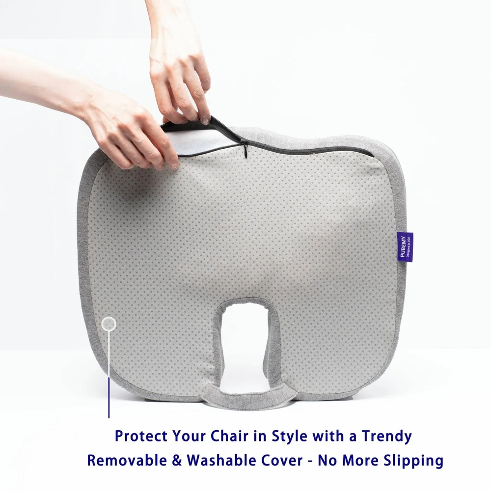 The Gel Infused Seat Cushion, a must-have for your office chair, wheelchair, or car seat. Experience optimal comfort and support during your workday with this premium cushion. Designed for versatility, it can be easily interchanged between different seats, whether it's a rolling executive chair or a traditional desk chair. The Seat Cushion is perfect for both home and office use, ensuring that you can stay productive and comfortable wherever you are. The gel-infused technology provides a cooling sensation, reducing any discomfort caused by sitting for long periods. Crafted with your comfort in mind, this cushion helps alleviate pressure points and promotes proper posture. It's like sitting on a cloud! The high-quality materials used ensure durability, so you can enjoy the benefits of this cushion for years to come. Whether you're working on important projects, attending meetings, or simply relaxing, the Seat Cushion will provide the support you need. Enhanced Comfort: Experience the ultimate comfort with our gel-infused memory foam seat cushion. Its strategically designed coccyx cutout allows your tailbone to float, ensuring even those with sacrum sensitivities can sit for extended periods without discomfort. Say goodbye to back pain and enjoy luxurious seating wherever you go! Breathable Mesh Cover: The cushion is covered in a breathable mesh material that promotes airflow, preventing sweat and heat build-up. The removable cover is also machine washable, making it easy to keep your seat cushion clean and fresh. Ergonomic Design: With its carefully crafted ergonomic design, our seat cushion ensures optimal support and promotes healthy posture. It helps align your spine, reducing strain and allowing you to sit for longer periods without discomfort. Premium quality materials: We use only the finest materials to create our gel seat cushion. The 30 percent higher amount of premium memory foam ensures durability and long-lasting support. You can rely on the cushion to maintain its shape and provide consistent comfort day after day. Temperature-Sensitive Design: Designed with your comfort in mind, our gel seat cushion is sensitive to temperature fluctuations. In colder weather, some users have mentioned that the cushion may become firm and hard. However, once the material warms up, it quickly returns to its soft and supportive state.