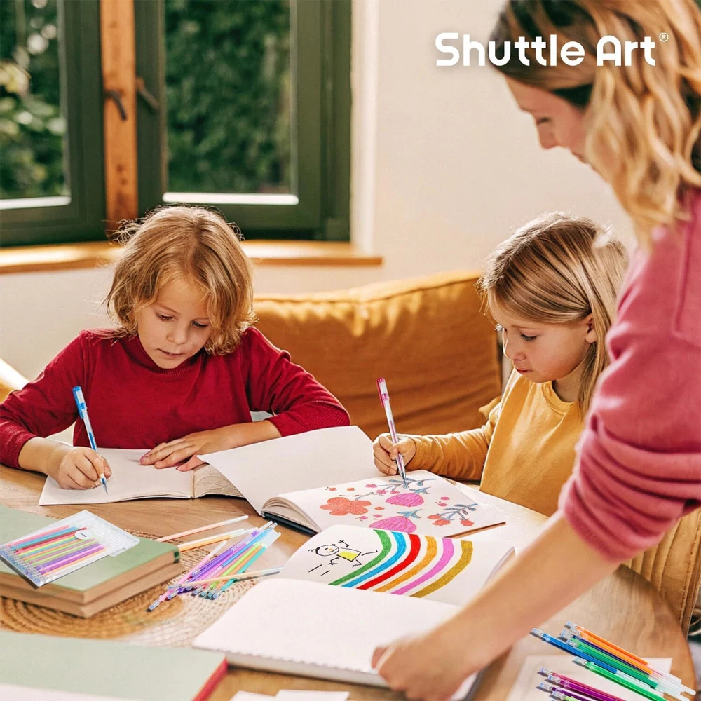 Gel Pen Refills, Shuttle Art 120 Colors (No 120 Count (Pack of 1), 120 Product Details Manufacturer: Shuttle Art Brand: Shuttle Art Item Weight: 7 ounces Package Dimensions: 10.67 x 5.75 x 0.63 inches Item model number: SAGP-120R Color: 120 Colors Closure: Snap Material Type: gel Number of Items: 120 Size: 120 Count (Pack of 1) Point Type: Fine Ink Color: Pastel Manufacturer Part Number: SAGP-120R Brand: Shuttle Art Ink Color: Pastel Style: Ballpoint Point Type: Fine Number of Pieces: 120 120 UNIQUE COLORS: Shuttle Art Gel Pen Refills Set has 120 unique colors, including 7 color types: glitter, neon glitter, metallic, neon, pastel, swirl, standard. Abundant colors with varied color types, fully meet your demands of coloring, writing and drawing. SMOOTH WRITING: Without skipping or bleeding, 0.8mm-1.0mm ballpoint tip can produce smooth and no skipping fine lines for coloring. And different color types are individually packaged, which makes it easier to find what you need. VARIETY OF USES: Great for bullet journaling, sketching, drawing, writing, coloring books and any other designs on Scrapbooks, School Projects, Party Invites, Greeting Cards, DIY Decor & Letters to Friends & Family. QUALITY GEL PEN REFILLS: The coloring gel pen refill set is non-toxic and acid-free. Conforms to ASTM-D4236. Definitely an ideal art supply for adults and kids. With those refills, there is no need to buy single pen. Less cost, more happiness.