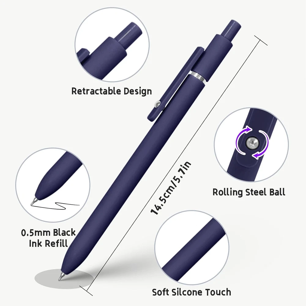 Super Soft Grip: Soft silicone features grip bring a super soft touch feeling which makes each gel pen easy and comfortable to hold 0.5mm Fine Point: 0.5mm black ink pens fine point smooth writing pens, writes small and clear. You can use them for all your writing, they don't run through the paper, and of course, no smear or bleeding Classic Design: Each writing pen has a durable clip that can let you fasten it to a notebook, binder, or pocket easily Perfect Gifts: They are cute school supplies accessories for men women kids in the classroom, school and office. It’s a good idea for a classroom prize for students, an art party gift, a birthday present and a Christmas gift Package Included: These journal pens included 10 pcs of high-end Vintage gel pens. They are great retractable pens for aesthetic school supplies, office supplies, journaling, note taking and planning Product Description