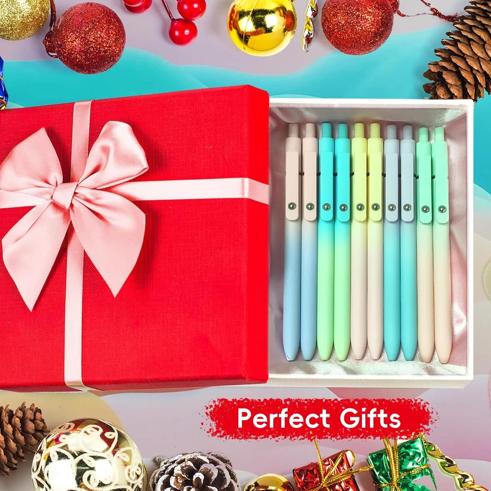 Super Soft Grip: Soft silicone features grip bring a super soft touch feeling which makes each gel pen easy and comfortable to hold 0.7mm Medium Point: 0.7mm black ink pens medium point smooth writing pens, writes small and clear. You can use them for all your writing, they don't run through the paper, and of course, no smear or bleeding Classic Design: Each writing pen has a durable clip that can let you fasten it to a notebook, binder, or pocket easily Perfect Gifts: They are cute school supplies accessories for men women kids in the classroom, school and office. It’s a good idea for a classroom prize for students, an art party gift, a birthday present and a Christmas gift Package Included: These journal pens included 10 pcs of high-end pastel gel pens. They are great retractable pens for aesthetic school supplies, office supplies, journaling, note taking and planning Product Description