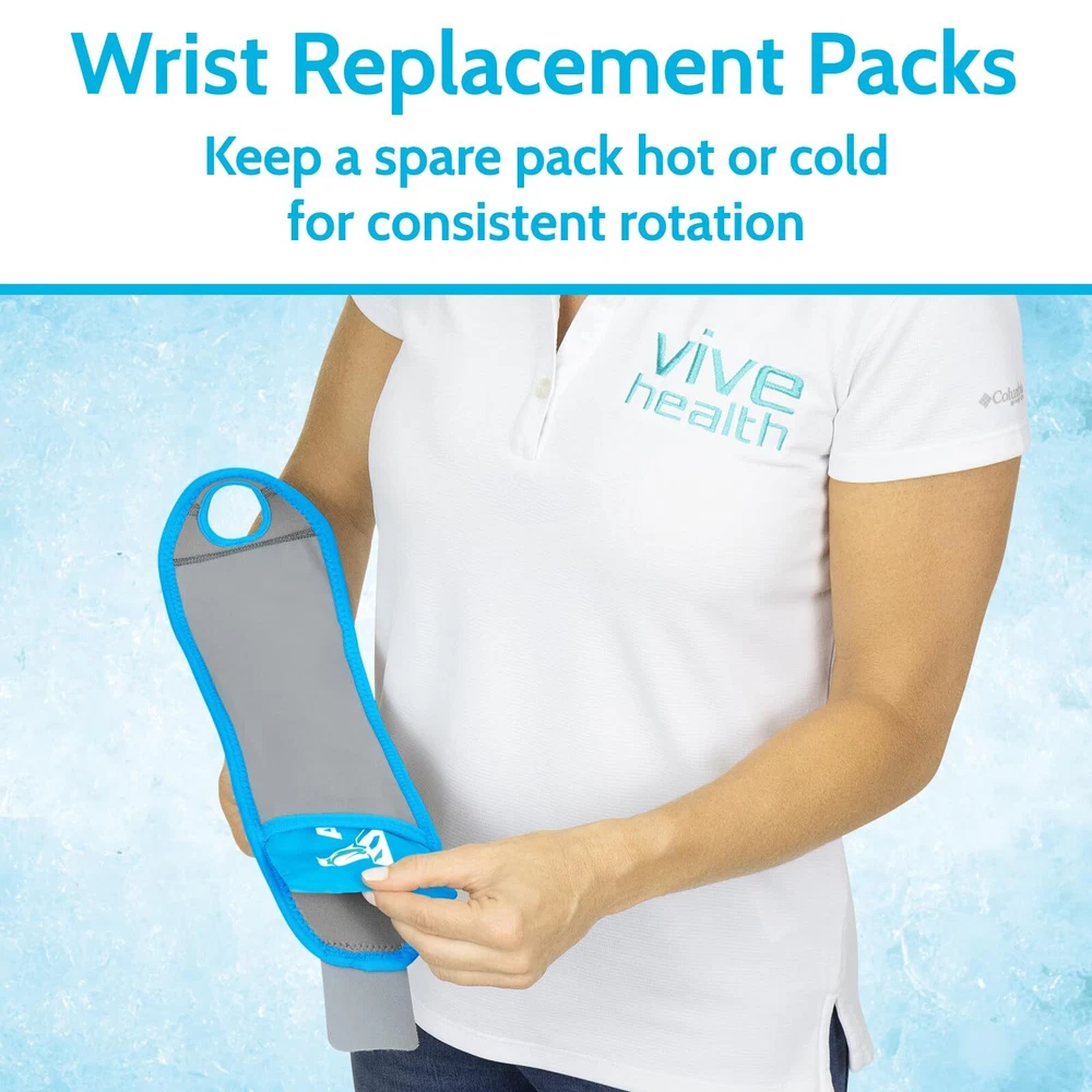 Replacement Wrist Ice Wrap Cold Pack Perfectly sized, the replacement ice wrap cold pack is designed for use with the Vive wrist ice wrap. The cold pack is filled with a unique non-toxic gel that remains flexible when frozen for targeted relief and can be warmed to reduce inflammation. Constructed with soft, yet durable vinyl, the cold pack is latex-free and safe for sensitive skin. Large Wrist Pack: Sized to perfectly fit in the Vive wrist ice wrap, the replacement ice wrap pack is easily secured in the interior mesh pocket of the wrap for targeted relief. The unique shape also includes sealed dividers to ensure the soothing gel remains evenly dispersed throughout the pack. Flexible When Frozen: Soft and pliable, the gel cold pack is filled with a non-toxic silica gel that remains flexible when frozen to contour to the wrist for effective pain relief. Use for Heat or Ice Therapy: Providing soothing cold or heat therapy, the gel pack can be cooled or warmed for a personalized experience. Store the cold pack in the freezer for two hours or more for pain-relieving cold therapy. The gel pack can also be heated in a microwave or a similar manner for effective heat therapy. Durable and Reusable: Soft, yet durable, the gel ice pack is constructed with a strong, latex-free vinyl that is tear and split resistant and safe for sensitive skin. What’s Included: Replacement Wrist Ice Wrap Pack INCLUDES ONE UNIQUE GEL PACK: Sized to perfectly fit in the pockets of the Vive wrist ice wrap, this replacement ice wrap pack includes one gel cold pack. Use as a replacement pack or to simply have a full pack always ready for use. The cold pack slips into the wrist pack pocket to relieve pain, swelling and inflammation. FLEXIBLE WHEN FROZEN: Soft and pliable, the gel cold pack is filled with a non-toxic, clay gel that remains flexible when frozen to contour to the targeted area for effective pain relief. USE FOR HEAT OR ICE THERAPY: Providing soothing cold or heat therapy, the gel pack can be cooled or warmed for a personalized experience. Store the pack in the freezer for two hours or more for cold therapy. The gel pack can also be heated separately in a microwave or a similar manner for effective heat therapy. DURABLE AND REUSABLE: Soft, yet durable, the gel ice pack is constructed with a strong, latex-free vinyl that is tear and split resistant and safe for sensitive skin. VIVE GUARANTEE: 60 day guarantee so you can purchase now with confidence.