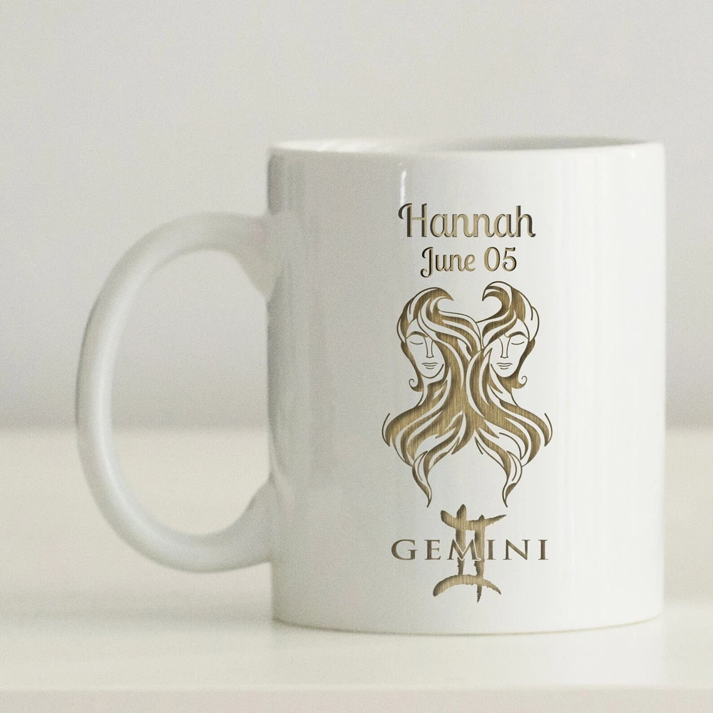 Gemini Mug Personalized Birthday Gift For Her Gemini Astrology Coffee Mug For Women Born In June May Zodiac Sign Gemini Horoscope Cup Product Details.. This high quality 11oz. ceramic white mug has a premium hard coat that provides crisp and vibrant color reproduction sure to last for years. Perfect for all hot & cold beverages. The highest quality printing possible is used. It will never fade no matter how many times you wash it. Material: 100% Ceramic. Print both sides. Dishwasher and Microwave Safe. High Gloss + Premium White Finish. Printed in the U.S.A. Personalized & Custom. We support personalized and custom mug to add custom, when placing an order, you can add notes to the "order note" in shipping address section. Also you can contact us directly via message. Shipping Info. Ready to ship in 1 to 2 business days, All products are made-to-order and proudly printed in the United States. Shipped by USPS and DHL, You will receive your order in 5-7 days. Replace & Refund. All products are defective during shipping broken, chipped will be replaced free of charge. You are not satisfied with the product, we will refund 100% money to you. If any other issues arise, please do not hesitate to message, we would be more than happy to assist you.