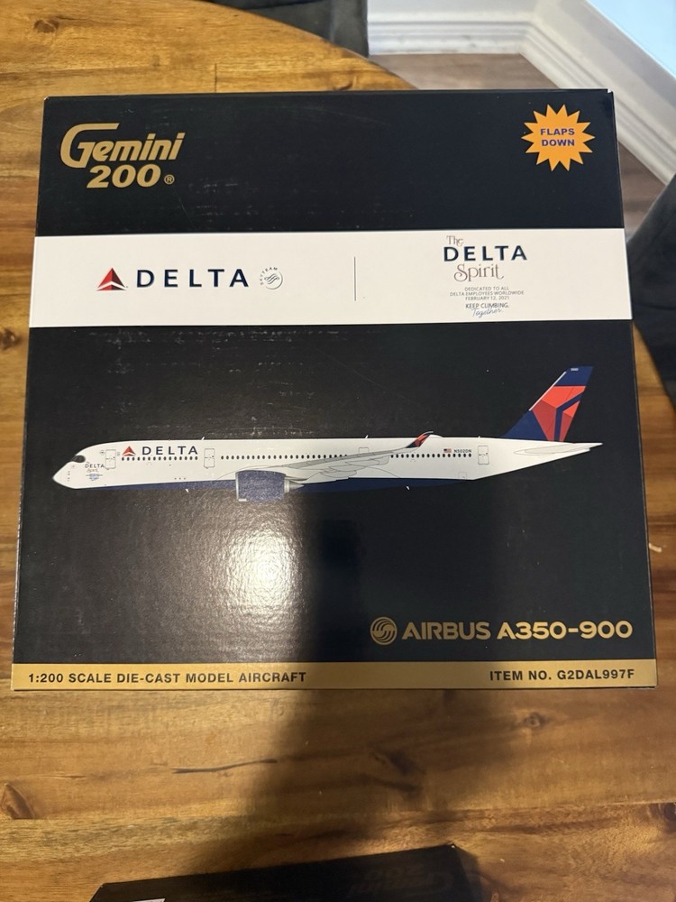 Country of Origin:ChinaMaterial:DiecastColor:White, Blue, RedScale:1:200MPN:G2DAL997F, G2DAL163Model:Delta Air Lines Airbus A350-900, Delta Air Lines Boeing 737-700Age Level:17 Years & UpTheme:Delta Air LinesVehicle Make:Airbus, BoeingVehicle Type:Commercial AirlinerAircraft Family:A350, Boeing 737Features:Flaps DownBrand:GeminiJets