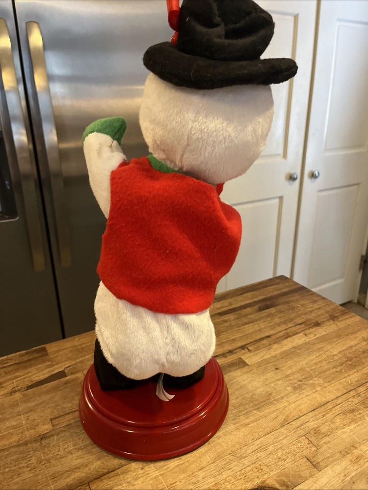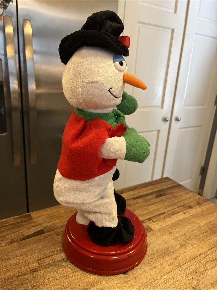 The Gemmy Booty Shaking Snowman is an animated plush figure that performs a fun and entertaining dance during the holiday season. This medium-sized snowman toy, suitable for adults, features a white color and is part of the Booty Shakers collection by Gemmy. With its cute design and playful movements, this snowman is perfect for adding a festive touch to any Christmas decor. Made in China in 2010, this retired collectible is a must-have for fans of holiday figurines and anime-themed gift ideas. Tested, Works and in good condition. Requires 4 AA batteries.
