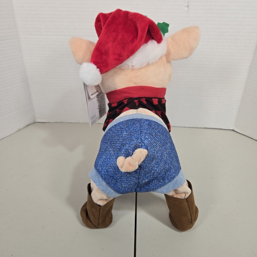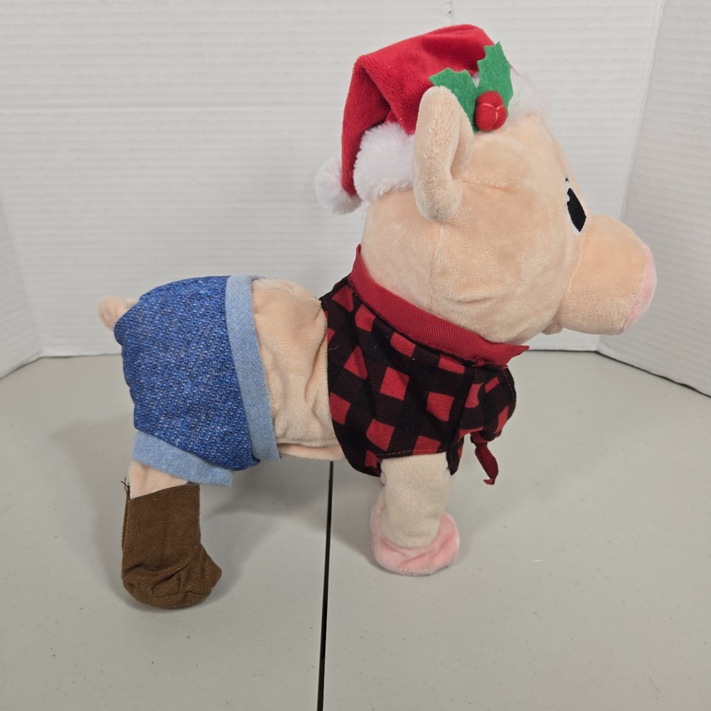 The Gemmy Animated Dancing Pig Plush is a medium-sized figurine featuring a pink plush fabric pig character that dances to the song "Pretty Girls Walk." This Christmas-themed item is powered by AA batteries and stands at 10 inches tall with a length of 12 inches. It is part of the Holiday Home Accents collection by Gemmy Industries and is suitable for indoor use, making it a fun and festive holiday decoration for teens, boys, girls, adults, and kids who enjoy farm animals and animated figurines. *This item is new with tags but does not work correctly. Legs do not move as well as they should. One leg moves the other one doesn't. *Please inspect all photos of item(s) before purchasing. If you have any questions, please feel free to ask.