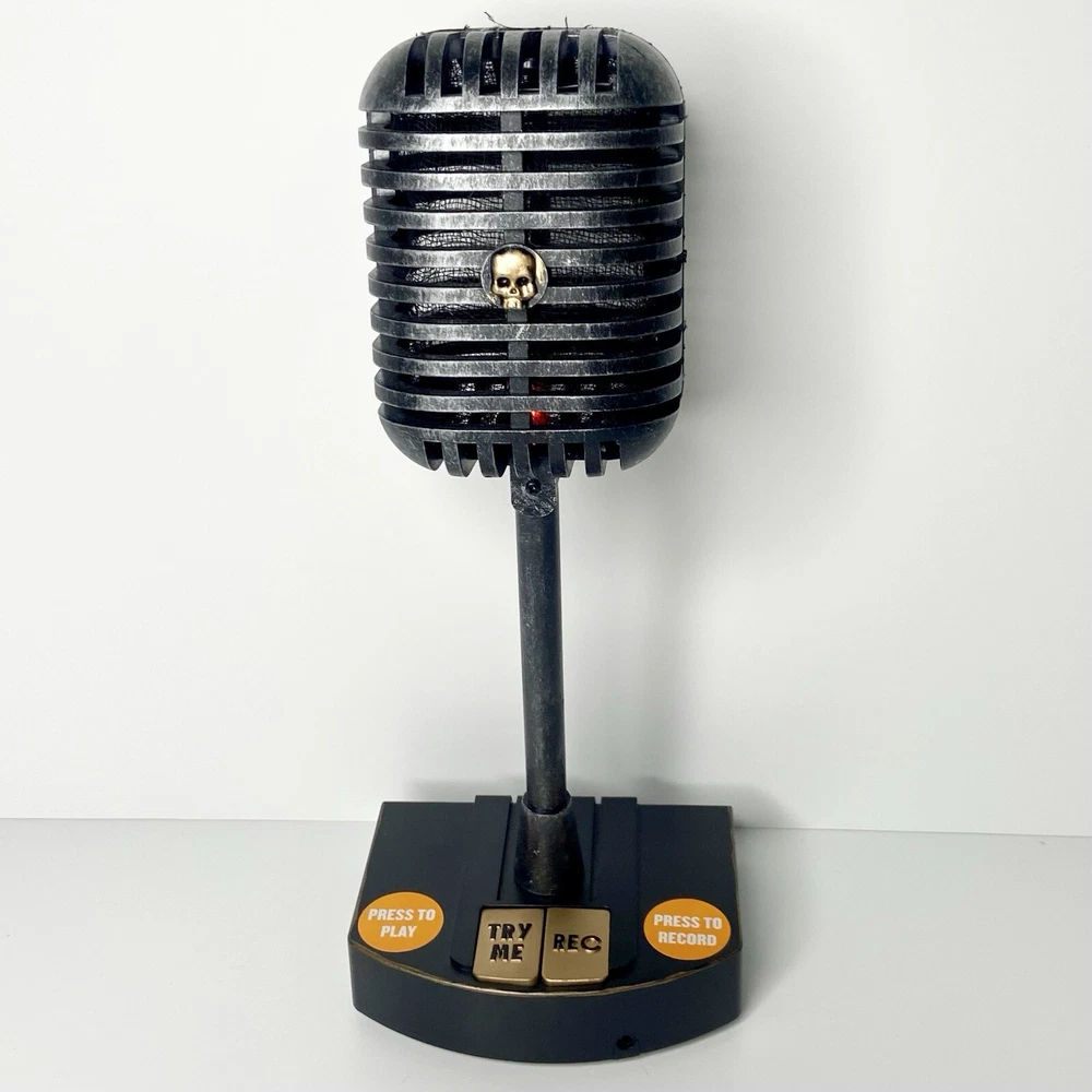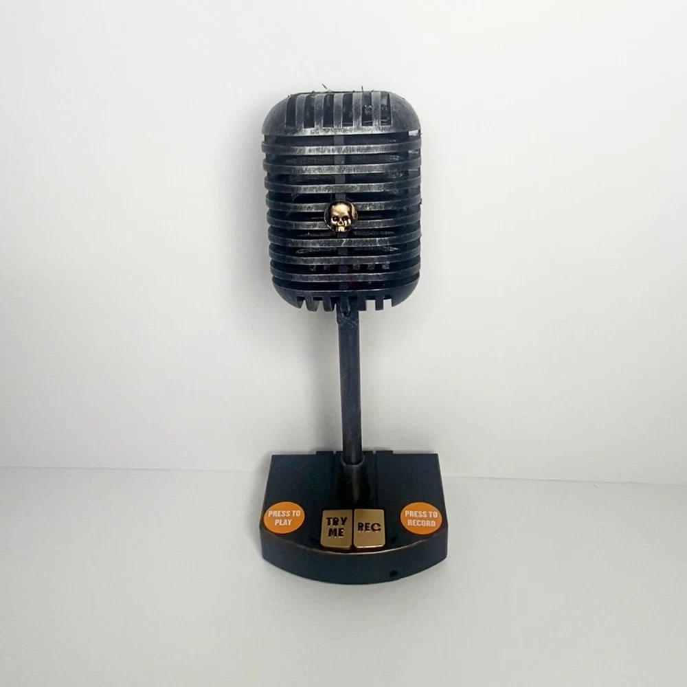 Measures approx 11” tall. Plays various phrases or press to record your own. Motion sense and light up. Requires 3 AAA batteries (not included). Battery compartment is clean. Tested and working. See video. Ships from smoke free home.