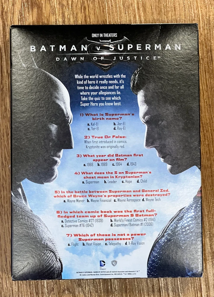 General Mills Limited Time Batman v Superman Dawn of Justice Cereal Box NEW.