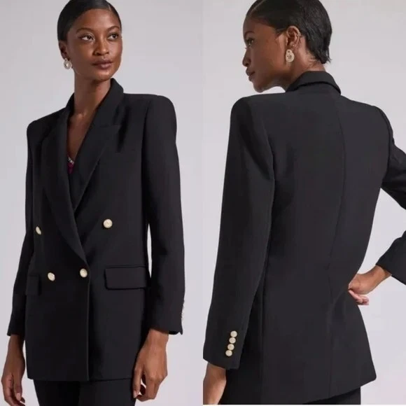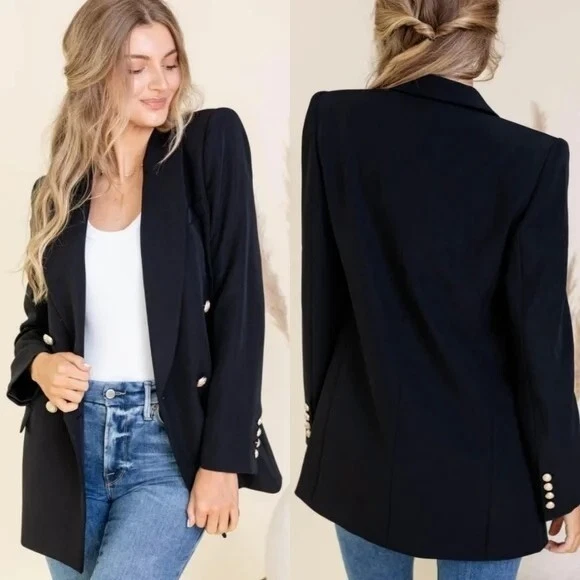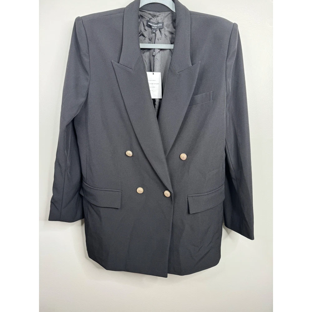 Generation Love Max Crepe Blazer Jacket Black Gold Buttons Sold at Revolve Size XL NWT Retail $415 Classic A slightly longer length gives this traditional blazer a more updated and modern look and feel. Street chic and ready to tackle the day . This can be styled for work or play. Starting with the padded shoulders as a softly structured silhouette boasts a relaxed, draped fit complete with intricate gold buttons along the front and at the cuff to add a pop of traditional flair. 95% Polyester, 5% Spandex Length: 32" Armpit to armpit: 22" Sleeve: 25" Features: • Blazer Size: Womens XL Condition: New With Tags