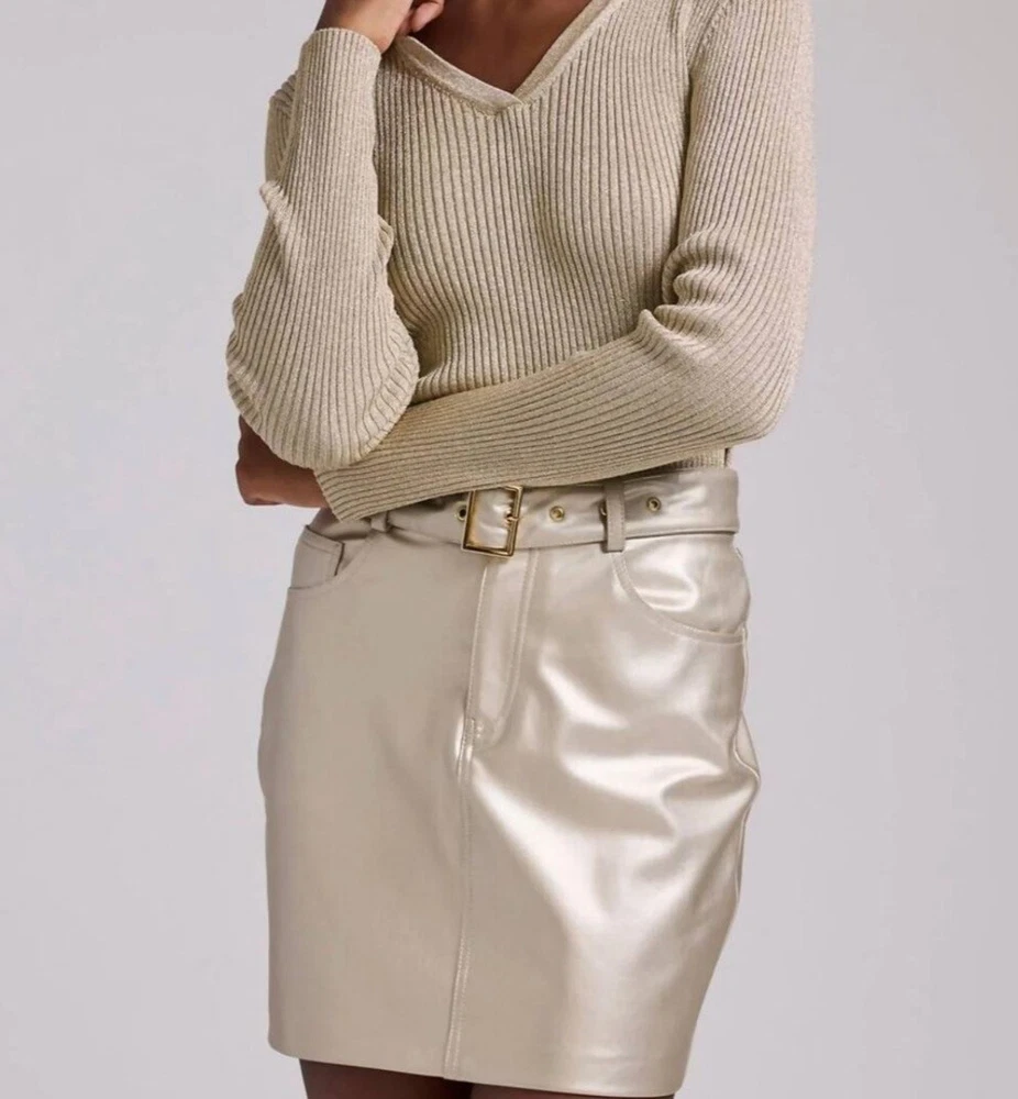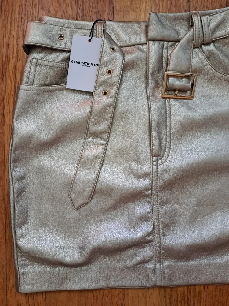 Generation Love Women's Gold Vegan Leather Skirt Size 0 NWT Super soft Retail $230