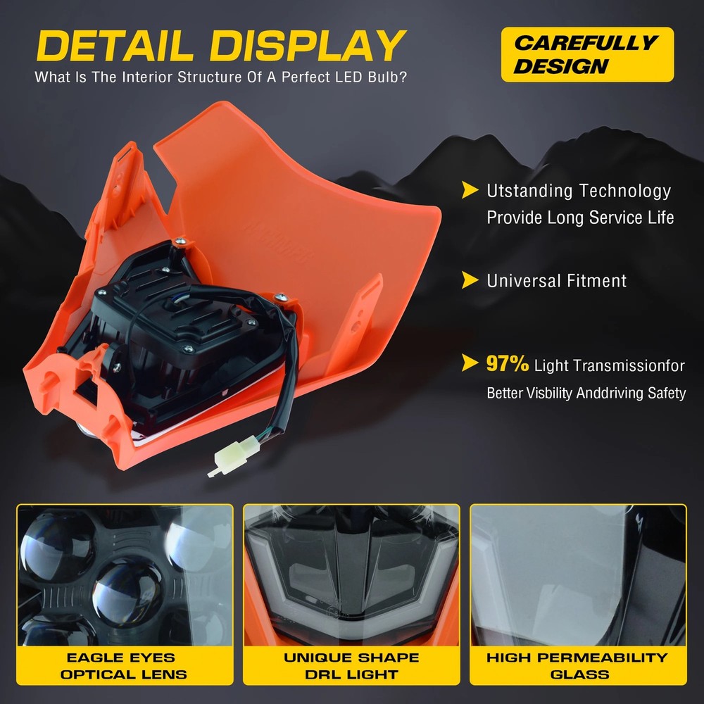 If available stock is too low, please advise the desired quantity. Product Highlights Swipe, compare and decide with confidence. 1 Overview 2 Gallery 3 Details & Specs 4 Support & FAQ Image gallery Tap thumbnails or arrows to switch the view. ‹ › ‹ › ‹ › ‹ › ‹ › ‹ › ‹ › ‹ › ‹ › ‹ › 1 / 10 2 / 10 3 / 10 4 / 10 5 / 10 6 / 10 7 / 10 8 / 10 9 / 10 10 / 10 Key benefits Why this product stands out Core features in a compact overview – ideal for quick comparison on eBay. Power output 24W LED module provides illumination in a compact headlight assembly. Item type Headlight Assembly designed for dirt bikes. At a glance Quick summary Clear & concise See the trail clearly with a compact 24W LED headlight assembly, built as a direct replacement for dirt bikes. This Headlight Assembly matches the item type and power rating, and is compatible with KTM EXC XCW models from 2014 to 2023. Designed to fit KTM EXC XCW 2014–2023, the assembly uses a 24W LED module for efficient illumination and straightforward swap into the existing headlight plate, helping you stay on the trail with reliable lighting. Details & Specs Technical Specifications Mobile-friendly Mobile: stacked view. Desktop: table view. Wattage 24W Light type LED Item type Headlight assembly Model compatibility Year range 2014–2023 for select bikes Wattage 24W Light type LED Item type Headlight assembly Model compatibility Year range 2014–2023 for select bikes Service & help Our promise, support & FAQs What’s included, service promise and answers to common questions. Included Scope of delivery – what is in the box 1× Headlight Assembly Our Service Promise Shipping, delivery window & tracking Transparent fulfillment: We are your contractual seller on eBay. Many items are fulfilled through third-party partners. Dispatch origin can be China (most orders) or the United States (some orders). Handling time: Orders are typically processed within the handling time shown on eBay (commonly 3–4 business days), before they enter transit. Carrier/service may vary: The shipping service or carrier shown on eBay can differ from the actual carrier used. Shipments may involve multiple carriers (international line-haul and a different U.S. last-mile carrier). Delivery estimate: The delivery date shown by eBay is an estimate and can be affected by carrier operations, routing changes, peak season, weather, and customs/processing delays. We generally select suppliers targeting about 15 days or less, but delays may still occur. Tracking: Tracking is not uploaded for most orders. Only when it is needed to prove that it got delivered. Support & issue resolution: We aim to assist via eBay messages, but replies are not guaranteed and may be delayed. If there is any problem (not received, damaged, defective, or not as described), please use eBay’s official request/case flow (e.g., “Item not received” or a return request) so the issue is documented and handled under eBay policy. Frequently Asked Questions (FAQ) Answers to common buyer questions What are the key specifications of this headlight? This is a 24W LED headlight assembly designed for dirt bikes and compatible with select models from 2014 to 2023. Will this headlight fit my dirt bike? It fits select models within the 2014–2023 range. Please verify compatibility by checking your bike’s year and mounting points. How do I install the headlight assembly? Remove the existing headlight, mount this unit in the same location, connect the wiring harness to the bike’s electrical system, and adjust the beam for proper aim. Is the headlight suitable for off-road use in wet or dusty conditions? Yes—when properly installed and sealed, it is designed to withstand rugged off-road environments. Structured product overview Designed for mobile & desktop Helpful support section © 2026 WARENGUT. All rights reserved. Item number: 5256807404893733