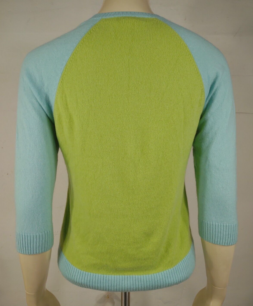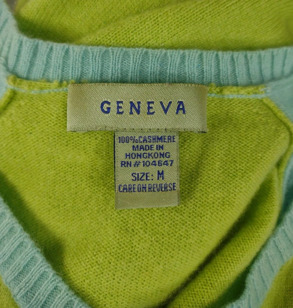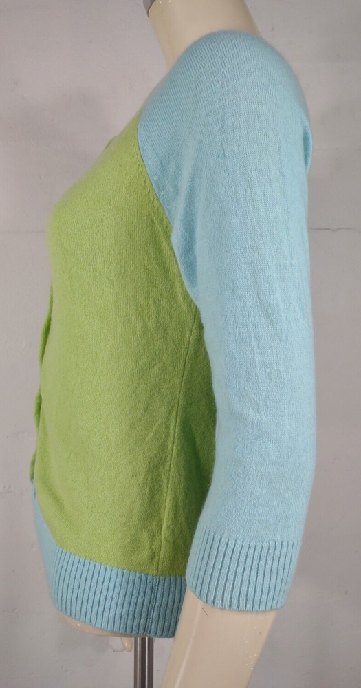 ladies button front cardigan sweater Geneva brand green, blue size M (Please refer to measurements below!) 100% Cashmere Excellent pre-owned condition! No flaws to speak of. Measurements lying flat: Bust (pit to pit): 17.5 inches. Length (from shoulder to bottom hem): 22 inches. Policies and Disclosures: RETURNS: Returns are accepted within 30 days of purchase. Buyer is responsible for return shipping. All items from this store come with an identification tag; Item(s) must be returned in original condition with the I.D. tag intact for a refund. SHIPPING: I do combine shipping when multiple items are purchased. In order to provide you with the least expensive price, you will need to send me a message requesting an invoice with combined shipping. CLOTHING: My goal is to sell only the finest quality new and gently used clothing items in my stores, and I strive for 100% satisfaction with every order. While my home is smoke-free, other pre-owned items from different sources cannot be guaranteed as smoke-free or pet-free. It is assumed that you as the buyer will be cleaning the garment once it arrives to you, so unless there is an obvious stain or odor, the clothing has not been laundered. I felt it was best left up to the buyer so no issues would surface regarding detergent allergies, shrinking, etc. Please note that any must or smoke odors can almost always be completely removed by adding 1 cup of distilled white vinegar to your normal wash cycle. I provide measurements on all my clothing items so that you, as the buyer, can make an informed decision about your purchase. Please use that information to compare it with a garment that fits you well to determine if the item will work for you. Seller will not assume responsibility for return postage on items that do not fit. COMMENTS: Please note that every item I sell is described to the best of my knowledge and ability, however, I am a human being, so occasionally I do make mistakes. Colors may vary slightly between screens and monitors. Sizing can vary from brand to brand. If you have any questions about the item(s), free to ask and I will do my best to get back with you in a timely manner. If you have any issues with your purchase, please do not hesitate to contact me prior to leaving negative feedback so we can try to resolve the issue. I am flexible and easy to work with. If you see something you are interested in, feel free to make a reasonable offer! (On a side note: Lowball offers are insulting and will be declined.) Take a moment to browse my other items for sale. I offer a large variety of items, with new items daily, so there’s something for everyone! Thanks so much for taking the time to look and have a wonderful day!