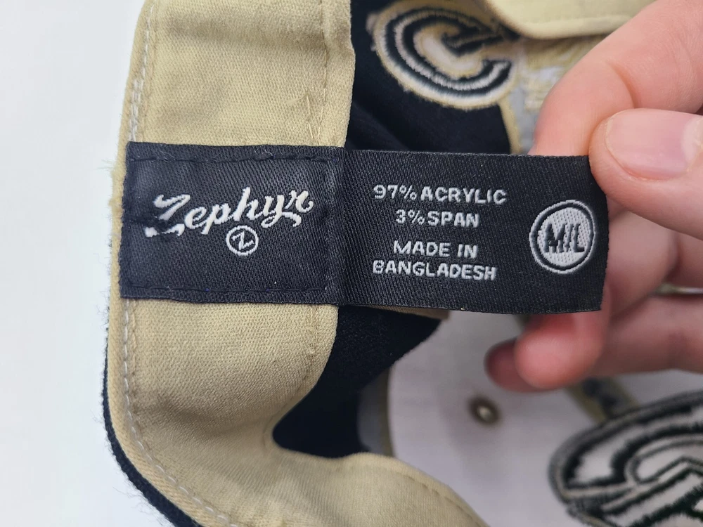 Country/Region of Manufacture: Bangladesh Sport: Football Brand: Zephyr Product: Cap, Hat Color: White Team: Geneva Golden Tornadoes Gender: Men Size: L