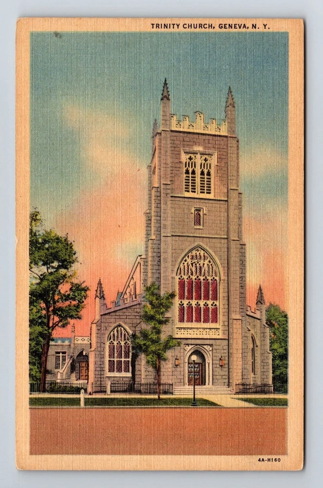 Geneva NY-New York, Trinity Church Vintage Souvenir Postcard