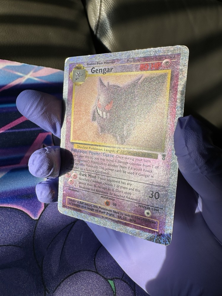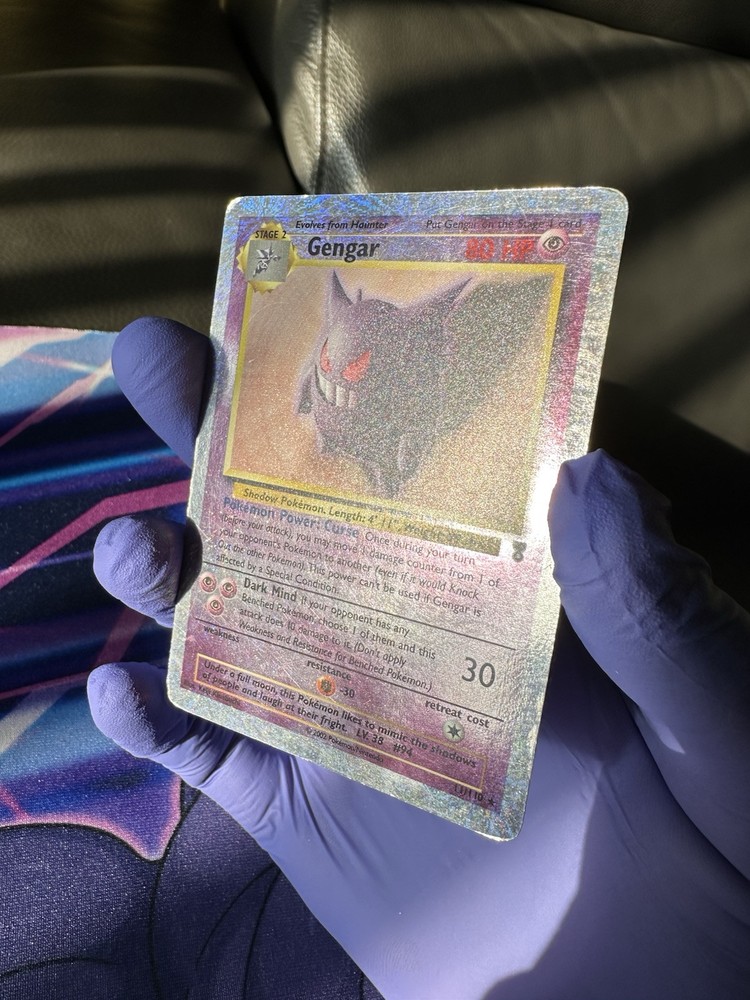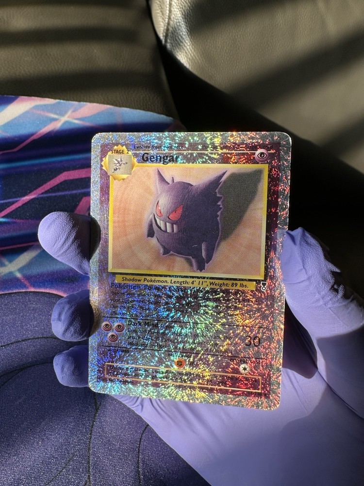 The product is a Gengar card from the Legendary Collection set of the Pokémon Trading Card Game. This Ultra Rare card features a holographic finish known as Reverse Holo, making it a valuable collectible item for fans of the franchise. Illustrated by Keiji Kinebuchi, the Stage 2 card has an HP of 80 and is in English. The Gengar card is numbered 11 out of 110 in the set, showcasing its rarity and desirability among Pokémon TCG enthusiasts.