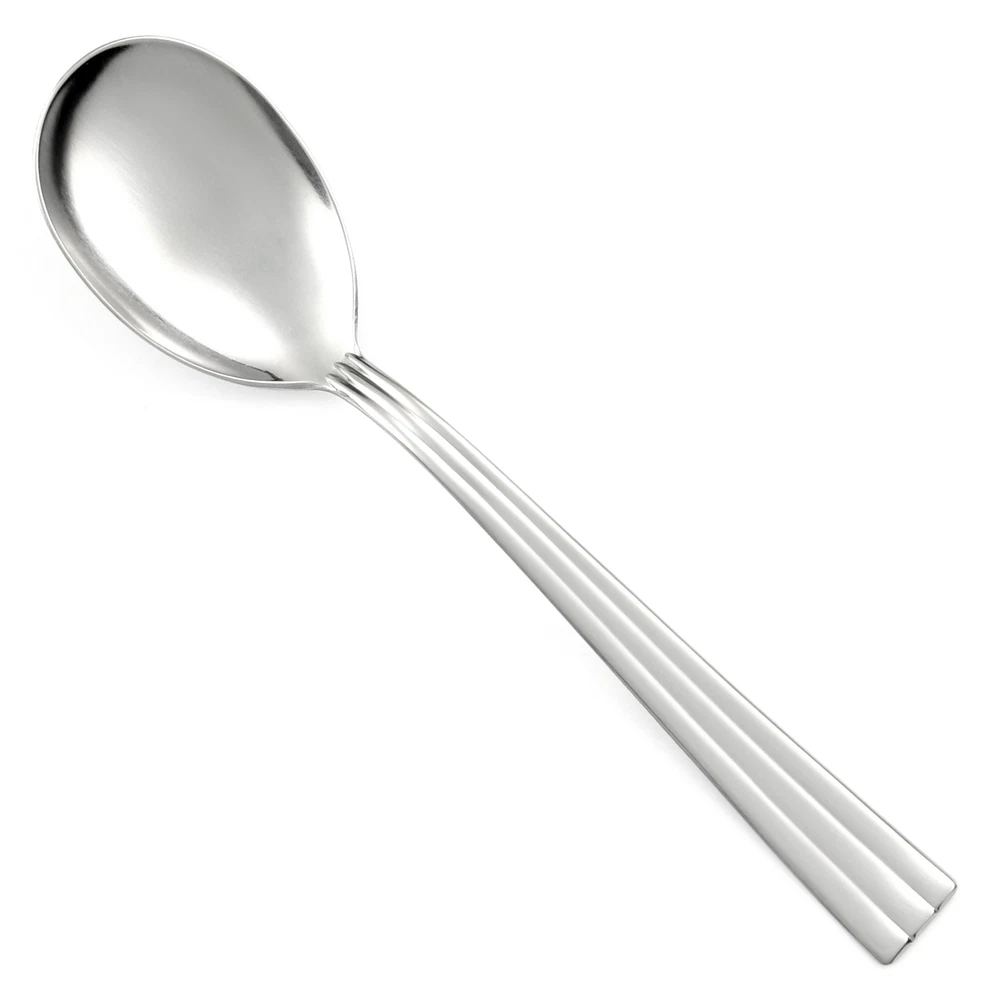 choice flatware Gense Thebe Pieces Casserole Spoon 8 1/4" (scallop bowl) Length 8 1/4" Dessert Knife 7 3/8" Non-Serrated Blade Length 7 3/8" Blade Edge Non-Serrated Blade Dinner Fork 7 1/8" Length 7 1/8" Fish Server 10 5/8" Length 10 5/8" Place/Oval Soup Spoon 7 1/4" Length 7 1/4" Salad Fork 6 1/2" Length 6 1/2" Sugar Spoon 5 3/4" Length 5 3/4" Youth Fork 5 3/4" Length 5 3/4" Condition Statement Great condition with only light, minor scratches from common use. Marks GENSE 18-8 STAINLESS SWEDEN Additional Information Please note that there are many different sizes for pieces in this pattern, so please check your needed lengths, tines and blades carefully.