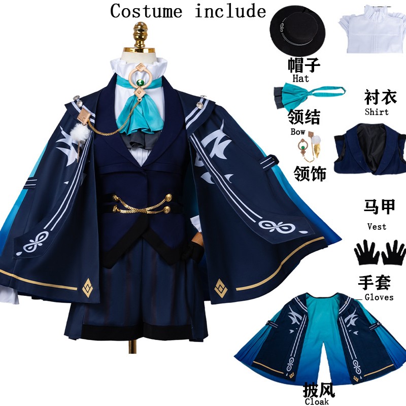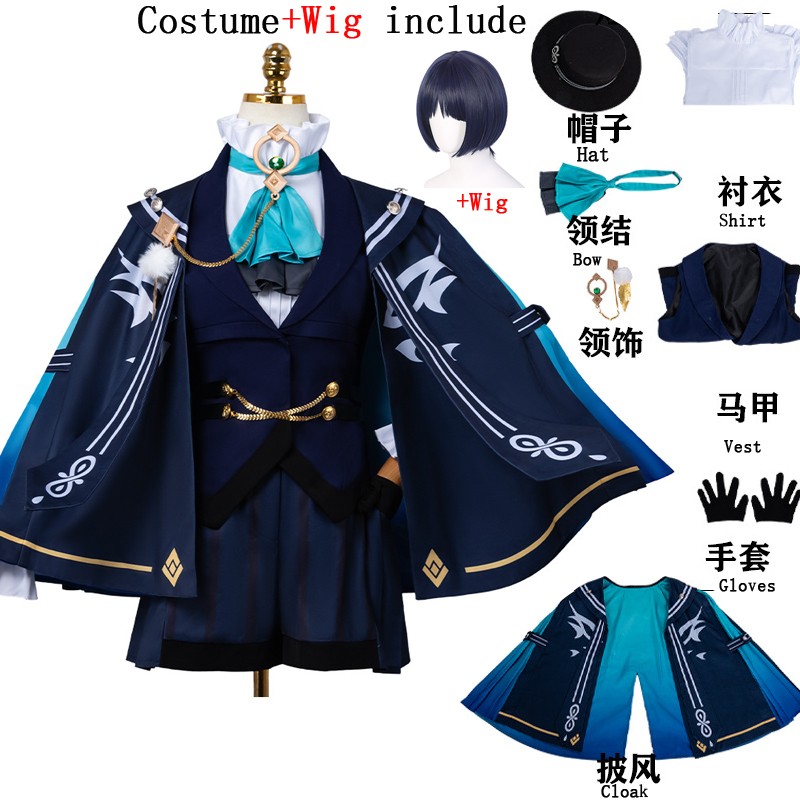 Genshin Impact Wanderer Scaramouche Cosplay Costume Balladeer Hat Wig Full Sets