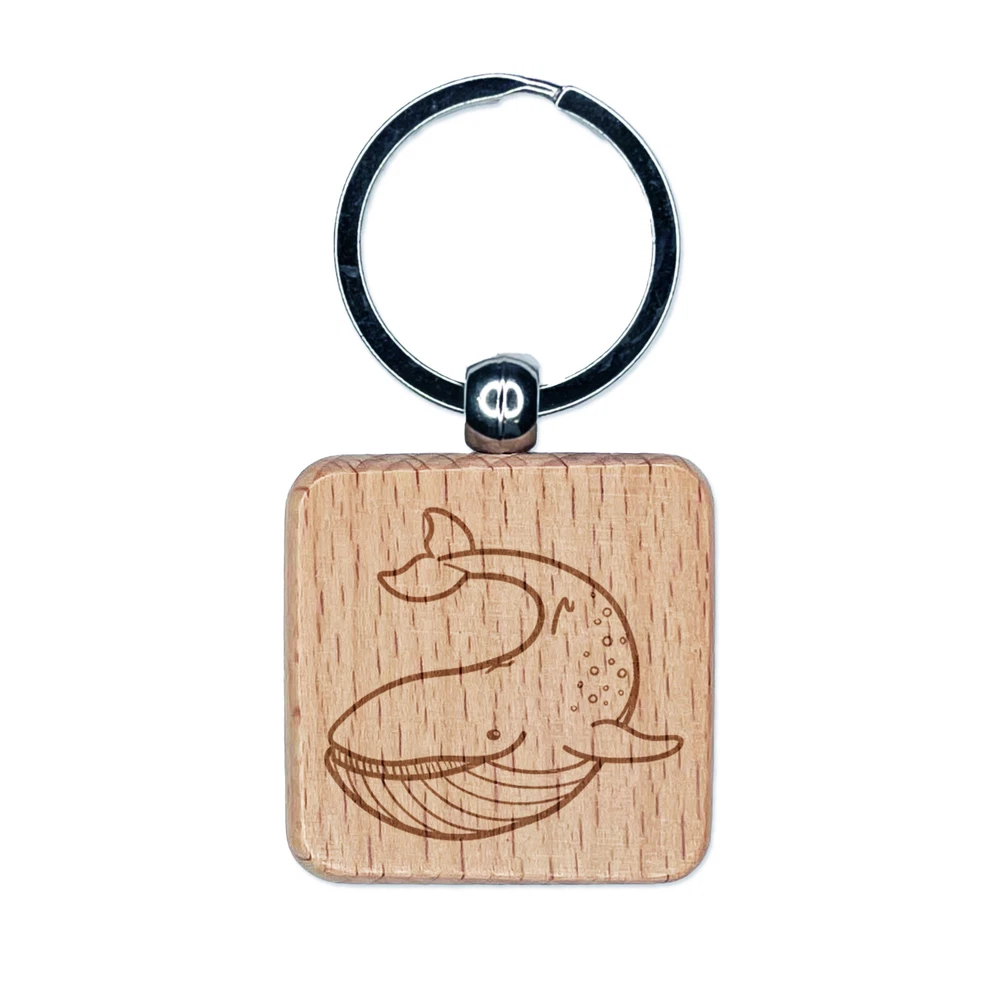 Gentle Blue Whale Engraved Wood Square Keychain Tag Charm