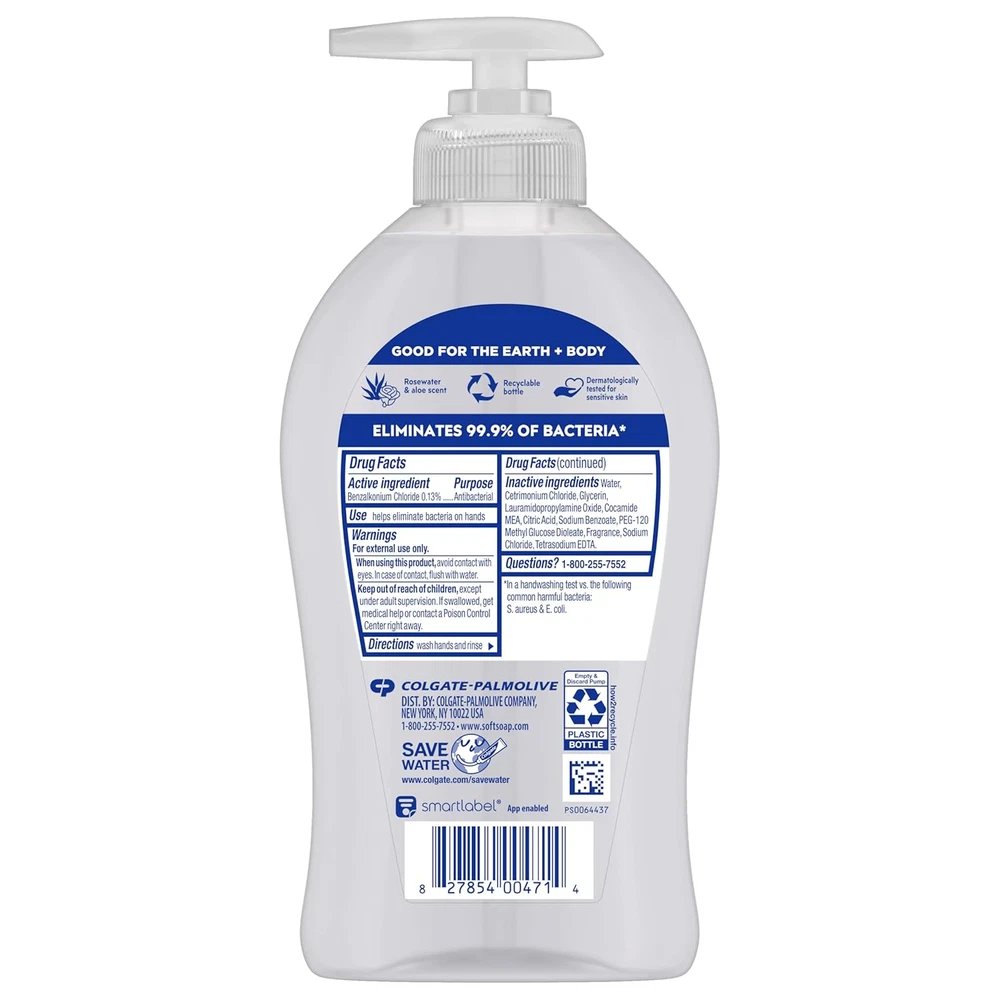 Six 11.25 oz Bottles of Softsoap Antibacterial Sensitive Liquid Hand Soap Our trusted formula is designed to eliminate 99.9% of bacteria (2), ensuring your hands are clean With a rosewater and aloe scent, this antibacterial liquid hand soap effectively cleans hands while infusing small moments with joy Our clear hand soap is enriched with moisturizers and helps protect skin’s natural barrier by retaining skin’s natural moisture This hypoallergenic bathroom hand soap is paraben free, formulated without phthalates, and dermatologist tested From the #1 liquid hand soap brand (1), comes Softsoap Antibacterial Sensitive Liquid Hand Soap which eliminates 99.9% of bacteria (2). With a rosewater and aloe scent, this antibacterial hand soap effectively cleans hands while infusing small moments with joy. Our liquid hand soap is enriched with moisturizers and helps protect skin’s natural barrier by retaining skin’s natural moisture. This special formula leaves skin feeling soft. This fresh kitchen hand soap is paraben free, formulated without phthalates, and dermatologist tested. Feel the joy of clean with Softsoap hand soap! (1) Based in part on data reported by Nielsen through its Market Track Service for the Liquid Hand Soap Category for the 52 week period ending 1/1/22, for the All Outlet market. Copyright © 2022 Nielsen. (2) in a handwashing test vs. the following common harmful bacteria: S. aureus & E. coli.