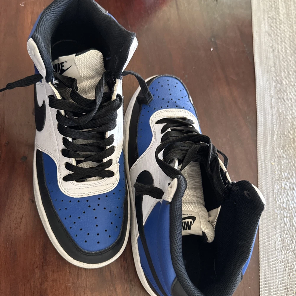 Size 8 - Nike Court Vision Mid Game Royal. This is gently-used/new with defects.