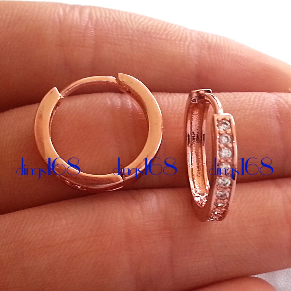 Genuine 18K Rose Gold Filled Hypo-Allergenic Crystal Huggie Hoop Earrings G1Y-R