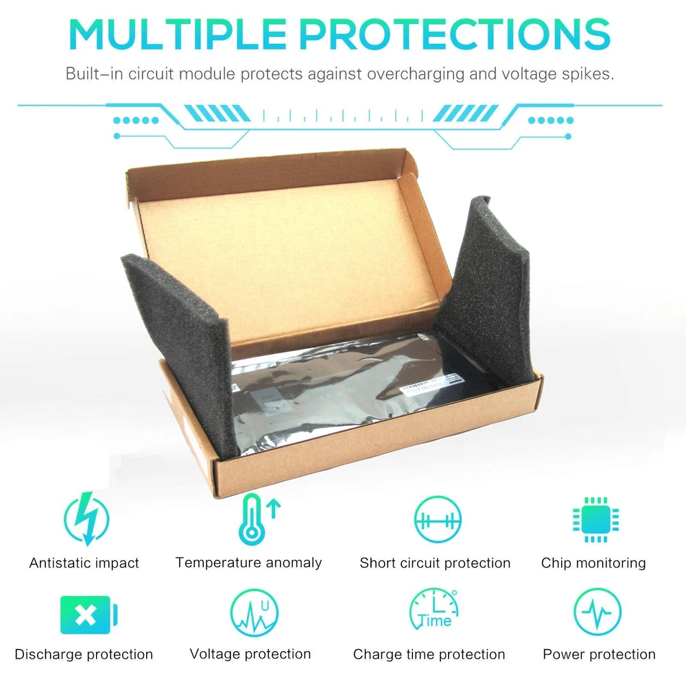 Item-Specifications: Type: Brand New Chemistry: Li-ion Voltage: 7.4V Capacity: 54WH Color:Black Warranty : 3 year Pack:Well packed in exquisite box Item-Apllicable Models: Dell Latitude 14 7000 Series Dell Latitude E7440 Series Dell Latitude E7450 Series Dell Latitude E7420 Series Dell Latitude E7250 Series Compatible Part Numbers: 451-BBFT 451-BBFV 451-BBFY F38HT G0G2M PFXCR T19VW 34GKR 909H5 3RNFD V8XN3 5K1GW G95J5 0909H5 0G95J5 E225846 Item-Special Notes: Before purchase, please confirm that your laptop model or part number Compatible with in our description; and also you can make a comparison between your original battery and our item, if same appearance(especially the connector location) it is no problem to replace with your laptop as long as your model or part number Compatible with in our description . About Us High Quality Standard Batteries We are a laptop battery manufacturer with more than 20 years of R&D technology and the first to start circuit board development, we are positioned for high quality, simplicity and durability. With our own R&D team and production factory, we are the most professional full-service provider integrating development, production, sales and service. Our products are stable, safe and reliable in performance. The factory started to enter the research, development and production of polymer batteries in 2012, all batteries are made of A grade cells, which are tested by the original factory computer. We provide 100% satisfied customer service, please feel free to buy! If you have any questions or suggestions about our batteries, please contact us through Ebay message so that we can provide the most convenient service for you. Perfect Match Your Device All of our batteries are brand new and are 100% compatible to meet OEM specifications for safety and efficiency. Same size as original battery, Don't worry about assembly and adaptation issues. Attention Please carefully confirm your laptop device model and battery model before purchasing. It is recommended to open the back cover of the notebook to confirm the battery model. Equipped with safety features Batteries pass rigorous smart tests such as short circuit protection, over voltage protection, discharge protection and over current protection, which are important for the life cycle and safety of the battery All batteries are made of high quality materials to ensure good performance.UL, CE, FCC, RoHS, UN38.3 certification and MSDS. Product Details 1.Power Interface: Gold-plated connector points to ensure current transport excellently and serve stably. 2.Enclosure: The enclosure is made of ABS + PC high quality material, it has high temperature resistant function to protect your laptop overheat. 3.Battery Buckle: The battery buckle is closely connected to the laptop, and the metal interface is stably powered. Payment 1. Only payment methods through eBay are accepted. 2. We send goods to your Ebay Address. Please make sure your Ebay Address is exactly your Shipping Address. If you want to revise the shipping address. Please contact us within 24 hours by e-mail. Thanks in advance for your close cooperation! 3. We provide 36-Months warranty for your customers, any question or problem about our product, please send us ebay message,and we will surely solve it for you. Shipment 1. Item will be sent out directly from our USA warehouse. 2. All items will be shipped within 24 business hours upon payment clears (except Saturday and Sunday and public holiday). 3. Generally, it will come to you in about 2-6 business days! If you fail to receive it after that period, you can contact us through ebay message, and we will give you further assistance. Returns 1. Our products have 36-Months warranty. Apply for a free return or replacement service within 30 days. A full refund can only be issued within 60 days. 2. If the return is due to the mistakes of buyers, for example, wrong purchase, no need of the batteries after transaction, or other artificial damages, the return shipping fee should be paid by the buyer. 3. We can't receive the returned item if buyer returns by yourself according to the address on original shipping package. We won't solve such case and buyer should responsible for the consequences. So please contact us before return the item. Feedback 1. Any problem after receiving our goods, please contact us before leaving Neutral / Negative feedback. We promise to help you solve it asap, and make you feel satisfactory absolutely. 2. Please DO NOT leave negative feedback without asking for help. Your understanding and support will be highly appreciated! 3.Thank you for your strong support to our business. We are looking forward to more opportunities for cooperation.