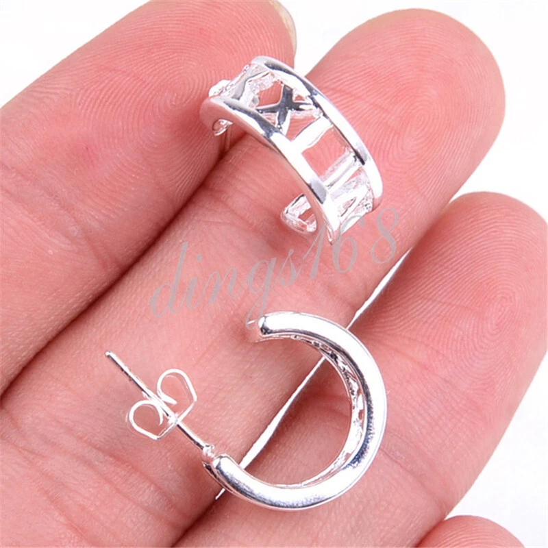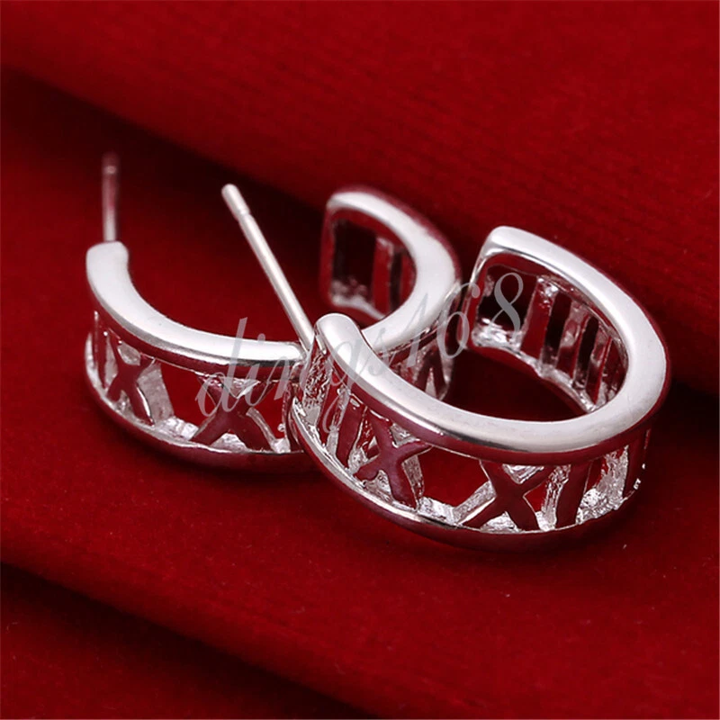 This listing is for a pair of 14mm/0.55 inch shiny 925 Sterling Silver Roman Numeral open hoop earrings. It is shiny, tarnish-free and hypoallergenic. It's a perfect piece for every situation, every day of the week. They are Hypoallergenic and tarnish-resistant. It does not flake off, lose luster or discolor. It is covered under our 60-day 100% money-back guarantee. *** Free gift box included. Product ID: A223 Metal: 925 Sterling Silver Color: Silver Product Dimension: Diameter: 14 mm (0.55 inch); Hoop width: 5.5mm Weight: 4.0 gram Quantity: One Pair of Earrings Note: *** Please always refer to the description for the measurement of the product. Please do not judge the size based on the picture on your screen. The product may look larger or smaller based on your screen size. 100% Satisfaction Guarantee We offer 100% satisfaction guarantee for all products we sell. If you are not 100% satisfied, you may always return the product for full refund or exchange within 60 days of purchase. Shipping & Payment All orders are shipped through USPS(Postal Office) from our warehouse in California, USA within 24 hours after your payment reaches us. For International buyers: We ship to all countries. We pay all shipping charge in full before your package is shipped. For international buyers, you may be collected an fee when the package is delivered. It's an importing tax that your government charges to protect your domestic business and job opportunities. It's the buyer's responsibility to pay the tax. Contact us The best way to contact us is through eBay message by using eBay's "ask a question" link.