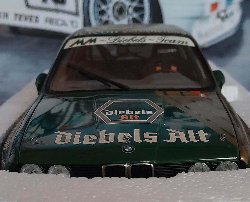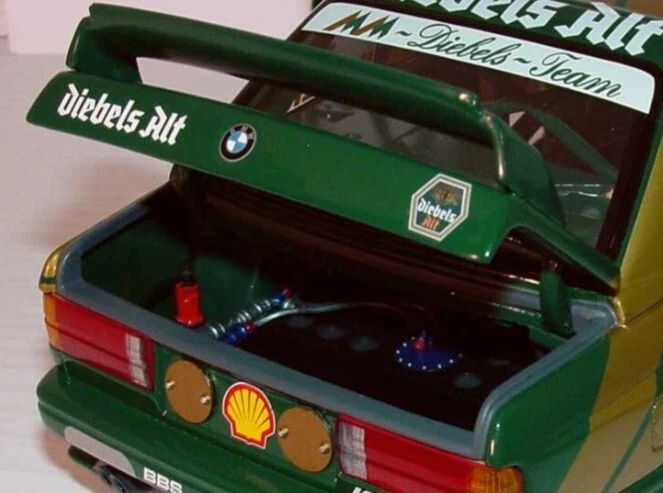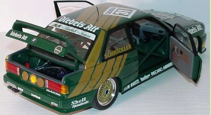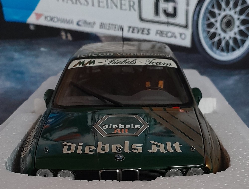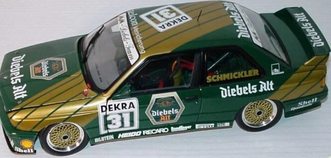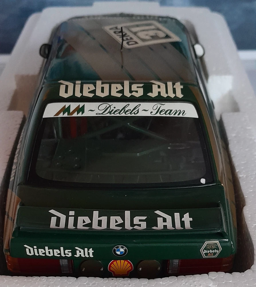 GENUINE BMW dealer model of the DIEBELS ALT liveried E30 M3 DTM race car. Model is in excellent condition. Comes in original BMW box, which is in excellent condition apart from on small tear on one end. This is one of the nicest models, the green and gold is outstanding. Very desirable and sought after. especially with dealer box. Will be shipped Royal Mail tracked with separate full value insurance. SEE OUR FEEDBACK!