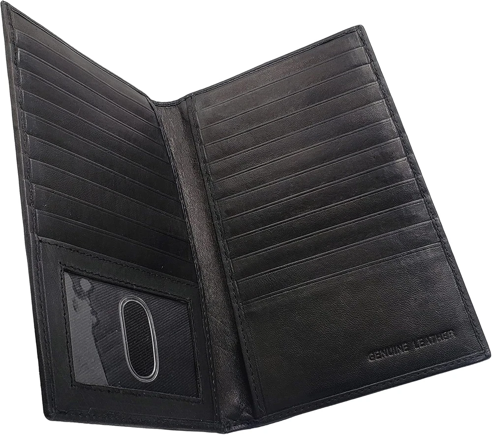 Genuine Black Leather RFID Wallet for Men with Long ID & 19 Card Slots