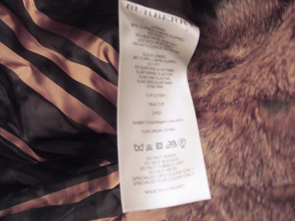 Genuine Burberry Rabbit Double Breasted Long Sleeve Fur Coat - Catawiki Size USA 2 This is a Genuine Burberry Rabbit Double Breasted Long Sleeve Fur Coat - Catawiki in a Size USA 2. Features: Doubled Breasted Front 100% Dyed Rabbit Fur Shawl Pop-Up Collar Lining 60% Acetate 40% Cupro Sleeve Lining 94% Cupro, 6% Elastane The fourth photo depicts the actual color of the Dyed Rabbit. From LONDON! It's in excellent condition. Get it today! All items are described as best as possible. This item comes from a smoke-free home. **I ship NEXT DAY ** Check out my other items ! Be sure to add me to your favorites list !