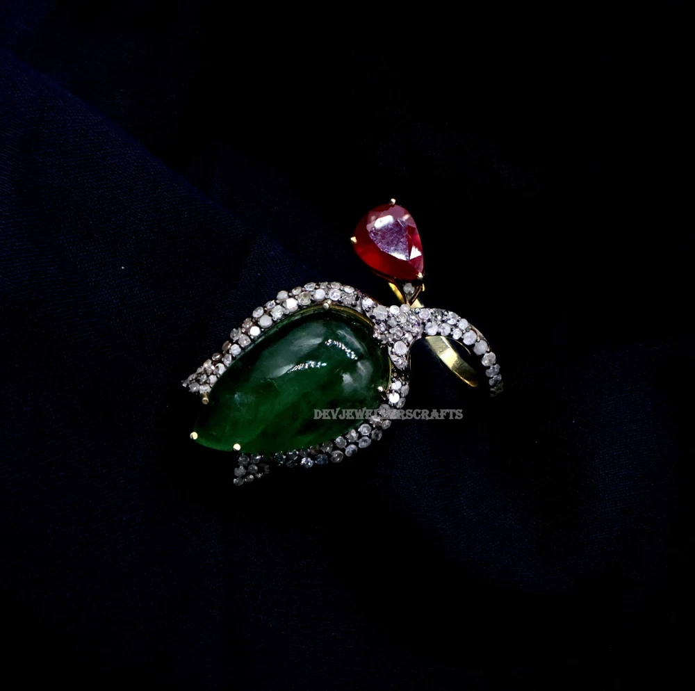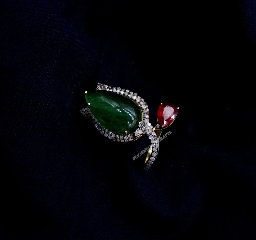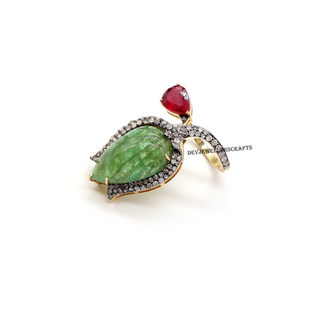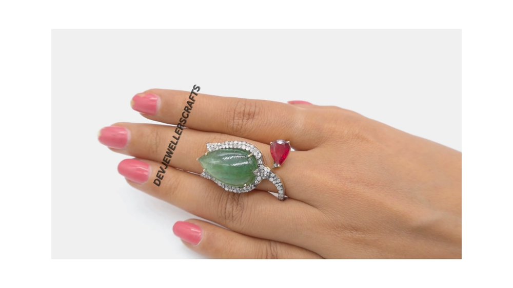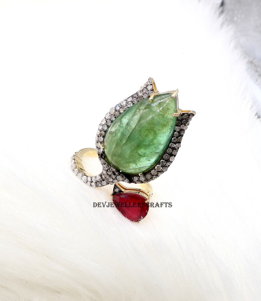 Seller Warranty: Yes Ring Size: All Size Available Base Metal: Silver Theme: Beauty, Fashion & Costumes, Love, Luck Main Stone: Emerald Antique: Yes Type: Ring Country/Region of Manufacture: India Occasion: Anniversary, Birthday, Engagement, Wedding Era: Art Nouveau (1895-1910) Diamond Clarity Grade: Included (I1) Gemstone Clarity Grade: Eye Clean Customized: Yes Main Stone Treatment: Not Enhanced Colored Diamond Intensity: Fancy Handmade: Yes Wholesale: Yes Material: Stone Signed: Yes Main Stone Creation: Natural Secondary Stone: Pave Diamond, Ruby Metal Purity: 925 Sizable: Yes Diamond Color Grade: I Brand: Victorian Style: Cocktail Main Stone Shape: Pear Personalize: Yes Main Stone Color: Green Seller Notes: “Genuine Emerald & Ruby Gemstone 925 Sterling Silver Pave Diamond Ring Jewelry.” Color: Gold Shape: Flower Setting Style: Prong Vintage: Yes Cut Grade: Excellent Country of Origin: India Metal: Sterling Silver