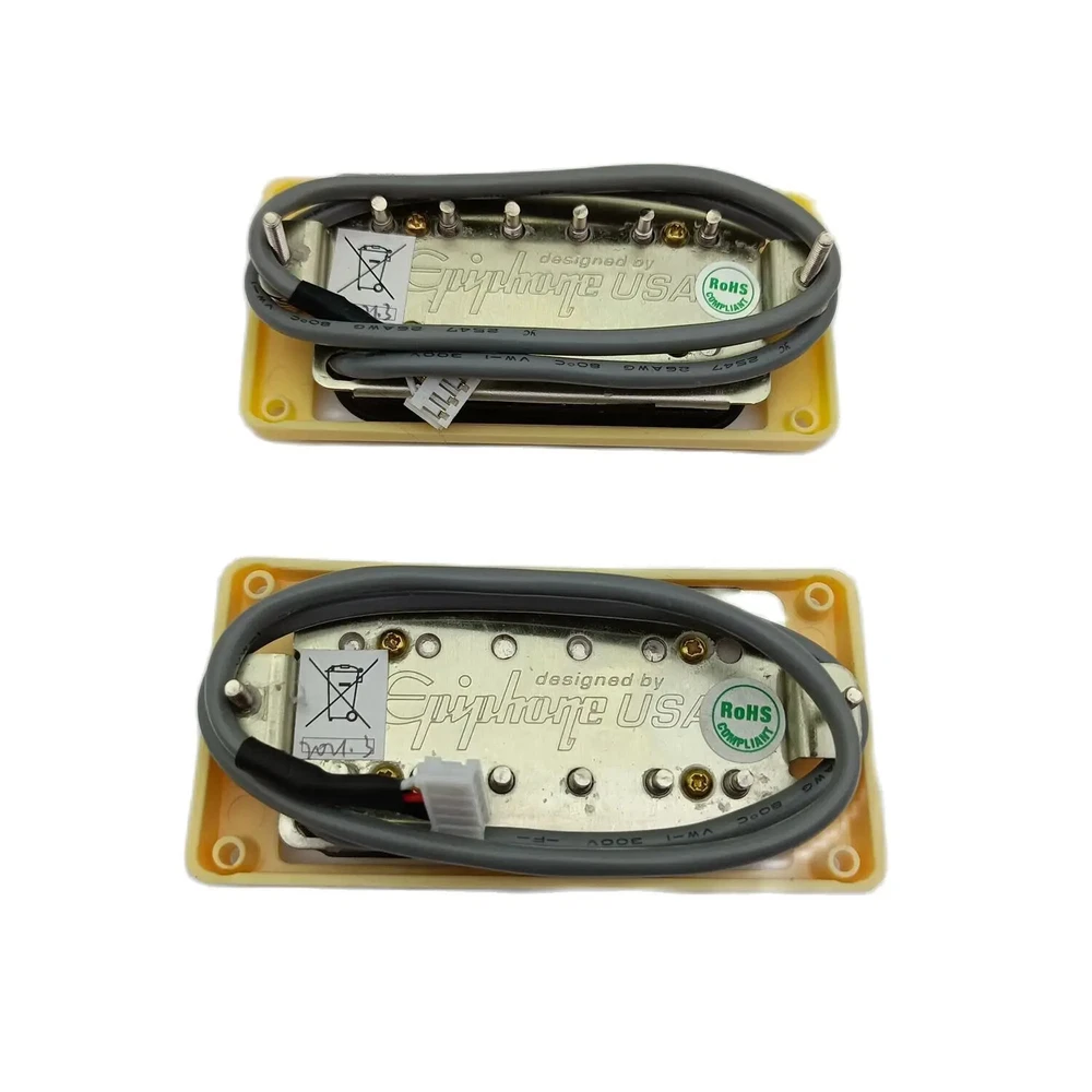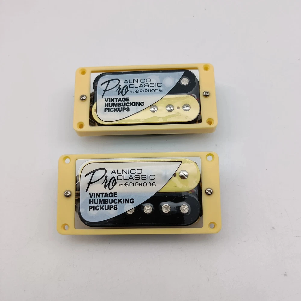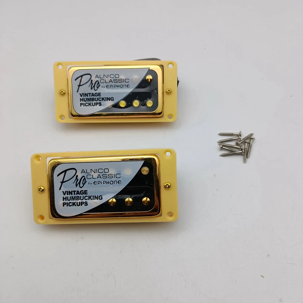 Item Model :Authentic Epiphone Alnico Classic Bucker PRO Vintage Humbucker Pickup Zebra 4C With Wiring Harness Magnet:I mported copper wire Alnico V Scope of use :Suitable for most electric guitars DC Resistance (approx.) : Neck 7 K ; Bridge:13.58K Hole distance : Neck 50mm ; Bridge: 52mm (K resistance is for reference only, which will change as the temperature changes.) Weight :350g / set Cable: 4C Braided Shield for humbucker pickup; 2C for single coil pickups Accessories: Springs+ Screws
