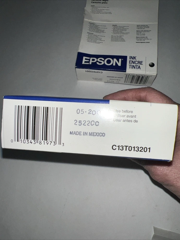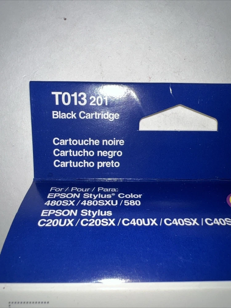 Ensure crisp, high-quality prints with the Genuine Epson T013 201 Black Ink Cartridge, designed for a seamless fit with your Epson Stylus series printers. This original Epson cartridge provides reliability and consistent performance, formulated to deliver superior-quality output on every page. It's an ideal choice for both professional and home use, bringing your documents to life with sharp, black text. Crafted in Mexico, this genuine ink cartridge is specifically compatible with a range of Epson printers, including the Stylus C40UX, C40SX, Color 580, C20UX, Color 480SXU, C20SX, Color 480SX, and C40S models. Easy to install and replace, it ensures your printing is uninterrupted, providing peace of mind with every print.