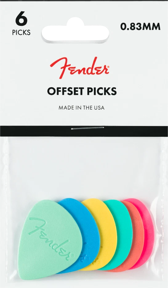 EXCLUSIVE SELLER DISCOUNT: EXTRA 10% OFF WHEN YOU BUY 4 OR MORE See all eligible items SAME-DAY SHIPPING When purchased by 12:00 PM NOON EST (M-F) 60 DAY FREE RETURNS (United States Orders Only) REAL SUPPORT Musicians helping Musicians EXPERIENCED SELLER Over 65,000 Satisfied eBay Customers Genuine Fender Offset Guitar Picks, Multi-Color (Set of 6) Authorized Dealer BRAND NEW BRAND: Fender | SKU: 198-9999-104 Product Description The most versatile pick EVER! Elevate your playing experience with the Fender Offset Pick - the game-changing pick you never knew you needed. Crafted from a durable polycarbonate material, the unique offset shape allows you to maximize your grip for a precise, bright attack. The pick's interior features a contoured thumb imprint and debossed Fender logo for a comfortable, multi-directional grip. FEATURES Available in medium gauge (0.83mm) Offered in black and multi-color packs Made in the USA Copyright © 2024 Guitar Audio | All Rights Reserved