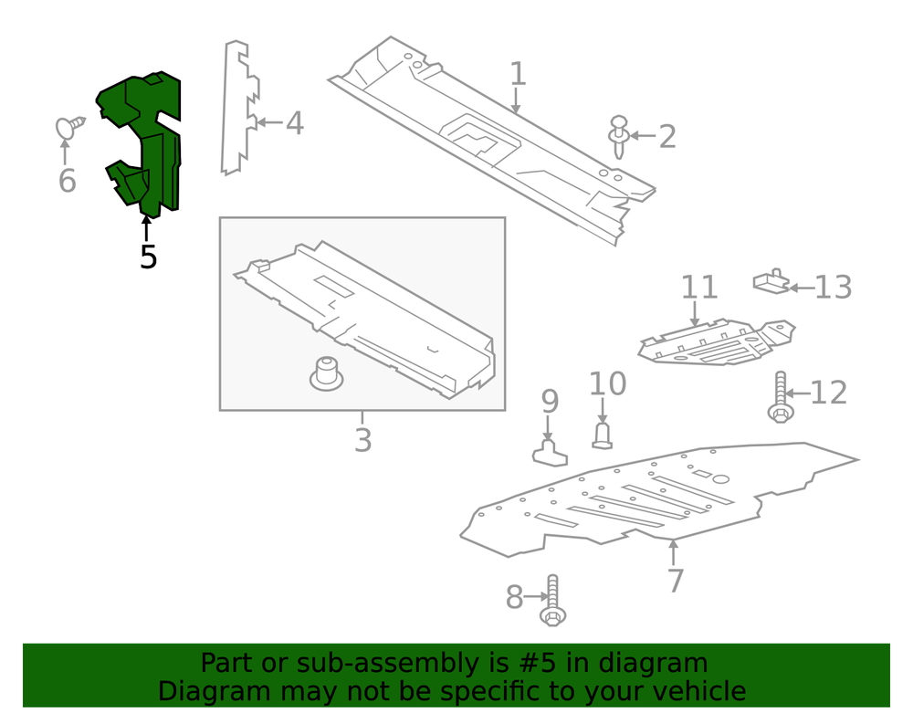 Hiller Parts Department Genuine Ford Air Deflector FR3Z-8310-C Part can be found as # 5 in the diagram above Product Description 5.0L, 2015-17, without adaptive cruise. 2.3L, with adaptive cruise. 3.7L, with adaptive cruise. Specifications Brand Ford Manufacturer Part Number FR3Z-8310-C SKU FR3Z-8310-C Product Genuine Ford Air Deflector FR3Z-8310-C ONLY PART REFERENCE #5 ON THE DIAGRAM IS INCLUDED Terms and Conditions Thank you for shopping with us. Please find our policies below. If you have any other questions, please don't hesitate to contact us. Shipping Terms In stock orders ship within 24 hours. Weekend orders will be processed the next business day. If a part is not in stock and must be ordered from the manufacturer, it usually takes 2-3 days to arrive to us and will be promptly shipped to you. Most of the orders are shipped complete within 2-3 business days. A few of the parts ordered from the manufacturer may take up to 5-6 business days to arrive and will shipped to you immediately. Depending upon location, ground shipments usually take 2-7 days. Your order may be shipped Overnight for an additional cost. Oversized shipments will be additional; you will be contacted prior to shipping for approval. We cannot guarantee transit times for ground and oversize orders. Shipping Carrier substitutions may be made at our determination in an attempt to reduce shipping cost to the customer. In the unlikely event that a part has been placed on backorder or discontinued, we will do our best to try and find one for you as quickly as possible We do not ship COD orders. Return Policy Contact us to arrange for any returns. A copy of the invoice will need to be included with the return. Parts must be resaleable and in the original packaging. 20% restocking fee may be charged, if the return item is used or not sellable. We cannot take back used parts. We cannot take back installed or tried parts. Electrical parts are not returnable. We do reserve the right to refuse and return any parts we find have been installed, are used or do not meet the above criteria. Return request need to be within 30 days of receipt. Cancellation Policy An order or a portion of an order may be cancelled up until the time it is shipped and no longer in our possession. Home • Newsletter Signup • Contact Us Copyright © 2026 Hiller Parts Department , All rights reserved. Solution by RevolutionParts, Inc. :: Design by OCDesignsOnline