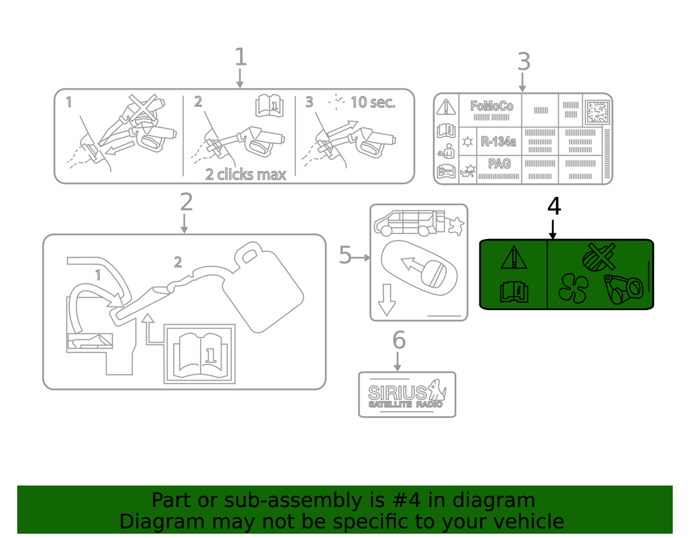 Brand: Ford Parts Included: ONLY PART REFERENCE #4 ON THE DIAGRAM IS INCLUDED Year: 2015 2016 2017 2018 2019 2020 2021 2022 2023 Model: Transit Connect EcoSport Manufacturer Warranty: 1 Year Make: Ford SKU: AU5Z-8653-A Manufacturer Part Number: AU5Z-8653-A Product Name: Genuine Ford Fan Label AU5Z-8653-A Genuine OEM: Yes Fitment Type: Direct Replacement