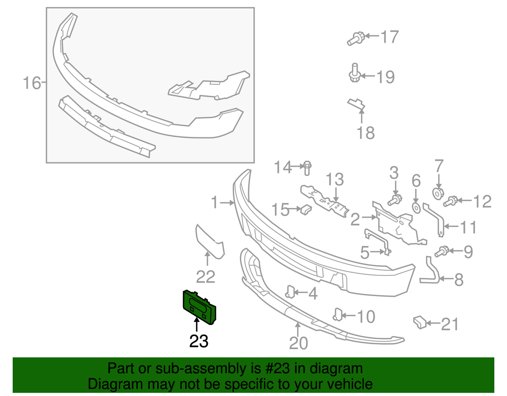 Manufacturer Part Number: 9L3Z-17A385-A Year: 2009 2010 2011 2012 2013 2014 Product Name: Genuine Ford License Bracket 9L3Z-17A385-A Brand: Ford Model: F-150 Parts Included: ONLY PART REFERENCE #23 ON THE DIAGRAM IS INCLUDED Fitment Type: Direct Replacement Make: Ford Warranty: 1 Year Genuine OEM: Yes SKU: 9L3Z-17A385-A