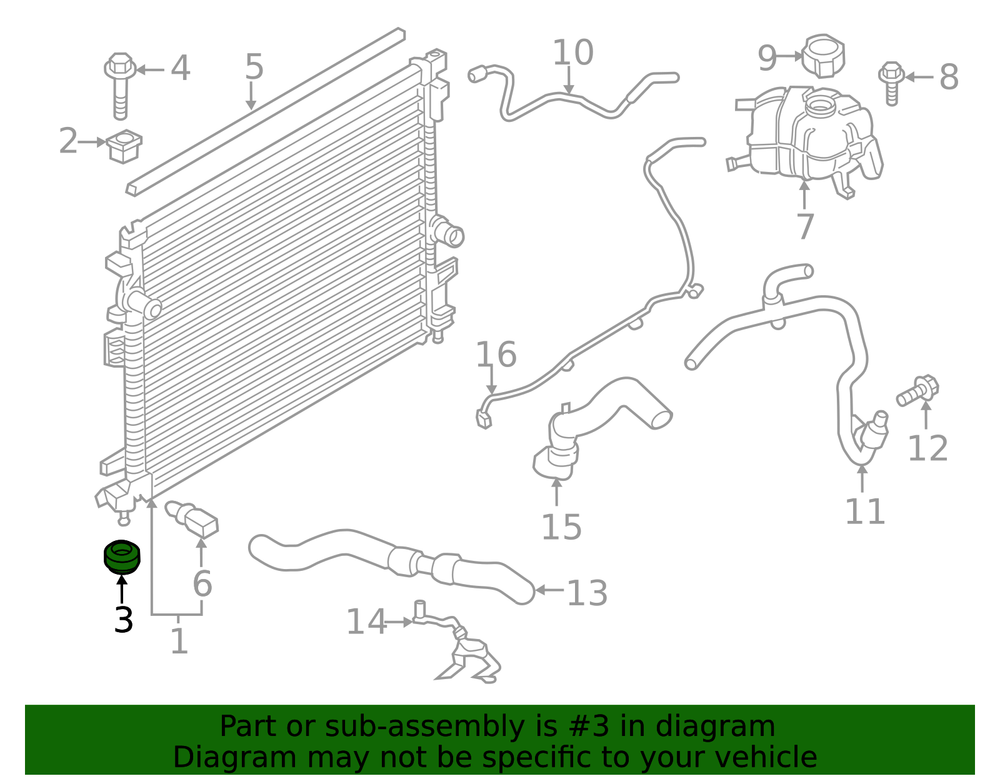 Hiller Parts Department Genuine Ford Radiator Lower Insulator DG9Z-8124-B Part can be found as # 3 in the diagram above Specifications Brand Ford Manufacturer Part Number DG9Z-8124-B SKU DG9Z-8124-B Product Genuine Ford Radiator Lower Insulator DG9Z-8124-B Replaces CV6Z-8124-A, DG9Z-8124-A, ED8Z-8124-B ONLY PART REFERENCE #3 ON THE DIAGRAM IS INCLUDED Terms and Conditions Thank you for shopping with us. Please find our policies below. If you have any other questions, please don't hesitate to contact us. Shipping Terms In stock orders ship within 24 hours. Weekend orders will be processed the next business day. If a part is not in stock and must be ordered from the manufacturer, it usually takes 2-3 days to arrive to us and will be promptly shipped to you. Most of the orders are shipped complete within 2-3 business days. A few of the parts ordered from the manufacturer may take up to 5-6 business days to arrive and will shipped to you immediately. Depending upon location, ground shipments usually take 2-7 days. Your order may be shipped Overnight for an additional cost. Oversized shipments will be additional; you will be contacted prior to shipping for approval. We cannot guarantee transit times for ground and oversize orders. Shipping Carrier substitutions may be made at our determination in an attempt to reduce shipping cost to the customer. In the unlikely event that a part has been placed on backorder or discontinued, we will do our best to try and find one for you as quickly as possible We do not ship COD orders. Return Policy Contact us to arrange for any returns. A copy of the invoice will need to be included with the return. Parts must be resaleable and in the original packaging. 20% restocking fee may be charged, if the return item is used or not sellable. We cannot take back used parts. We cannot take back installed or tried parts. Electrical parts are not returnable. We do reserve the right to refuse and return any parts we find have been installed, are used or do not meet the above criteria. Return request need to be within 30 days of receipt. Cancellation Policy An order or a portion of an order may be cancelled up until the time it is shipped and no longer in our possession. Home • Newsletter Signup • Contact Us Copyright © 2026 Hiller Parts Department , All rights reserved. Solution by RevolutionParts, Inc. :: Design by OCDesignsOnline