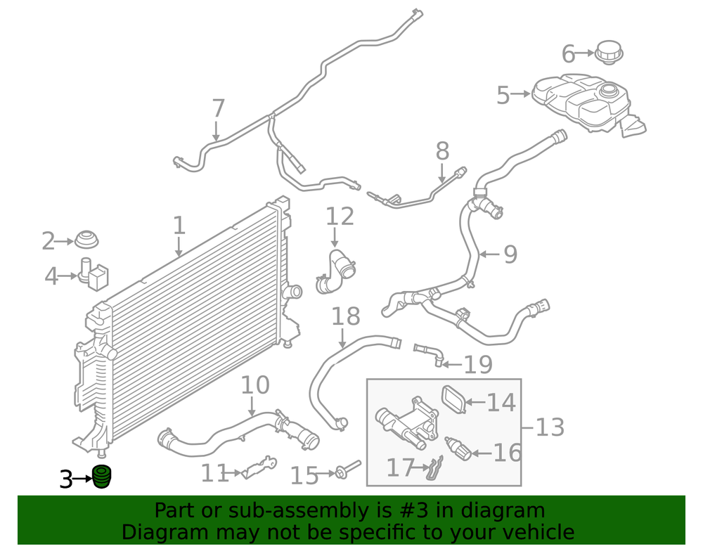 Product Name: Genuine Ford Radiator Lower Insulator DG9Z-8124-C Make: Ford Lincoln Brand: Ford Universal Fitment: Direct Replacement Year: 2012 2013 2014 2015 2016 2017 2018 2019 2020 2021 2022 2023 Model: Transit Connect Escape MKC C-Max Focus Manufacturer Part Number: DG9Z-8124-C Manufacturer Warranty: 1 Year Genuine OEM: Yes Parts Included: ONLY PART REFERENCE #3 ON THE DIAGRAM IS INCLUDED Replaces Part Number: CV6Z-8124-C, ED8Z-8124-A SKU: DG9Z-8124-C